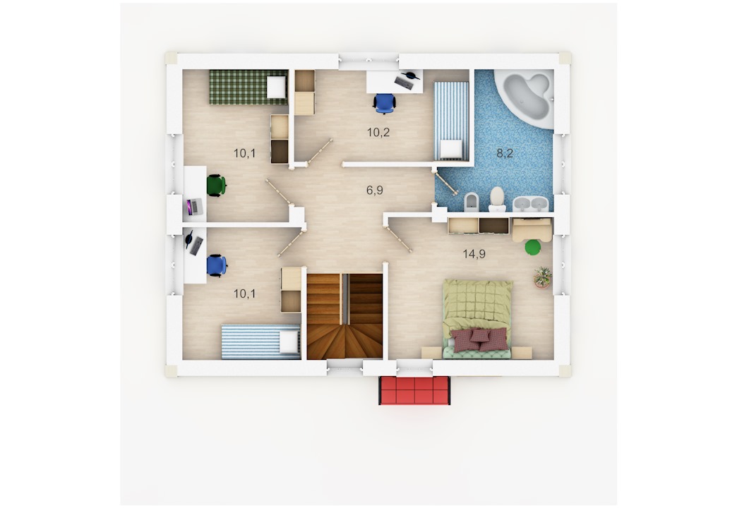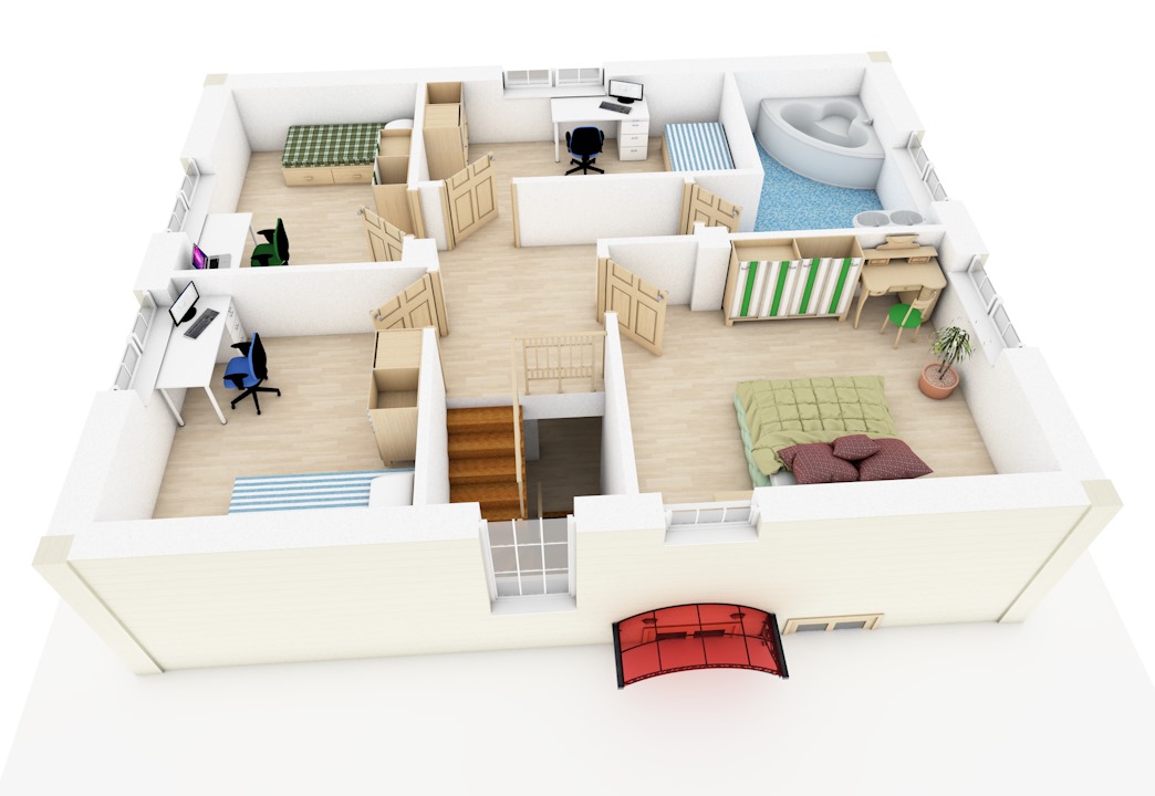 | 2 этаж | коридор, ванная, 4 спальни |