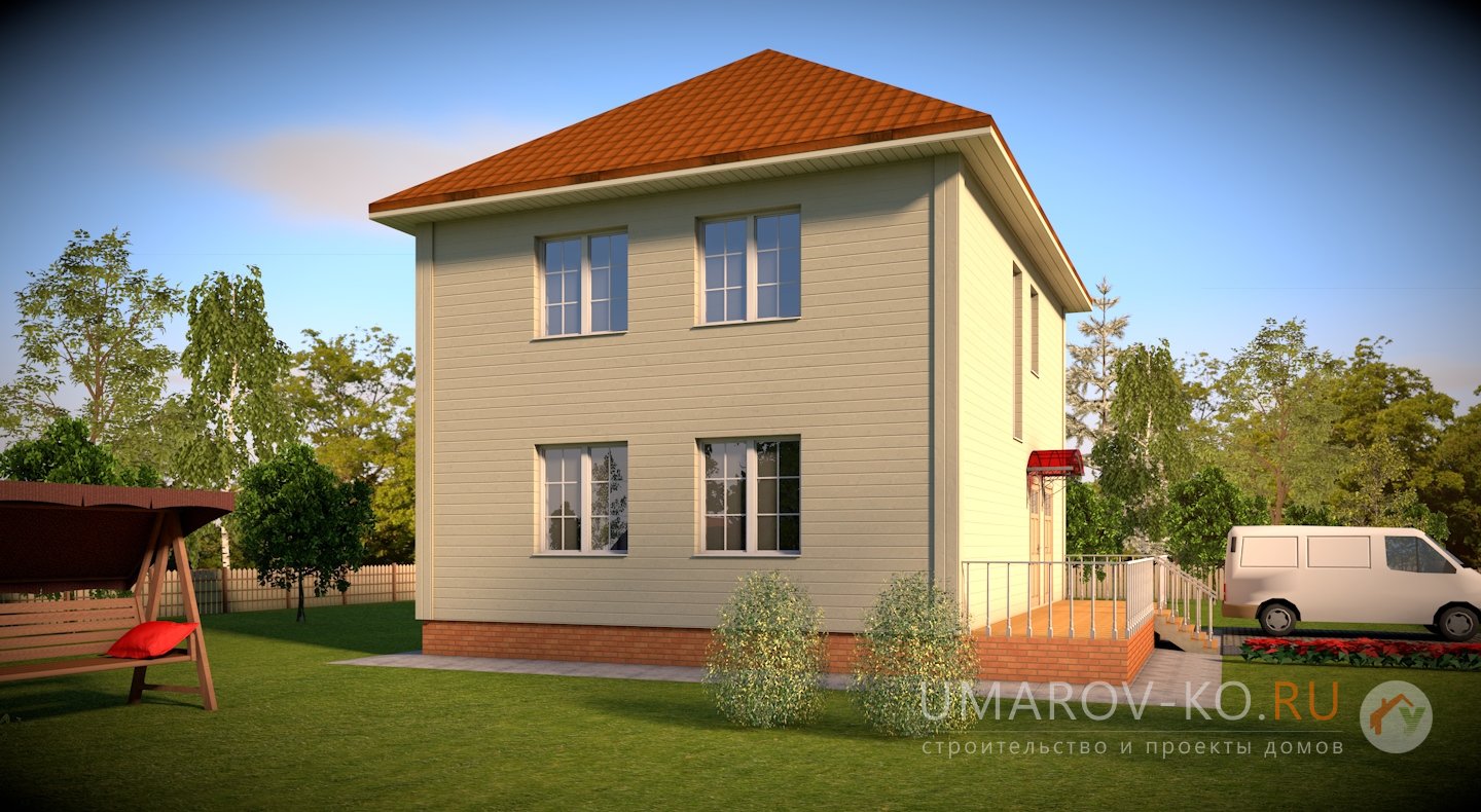 | Фасад | стены дома выполнены из газобетонного блока. Отделка по усмотрению Заказчика (сайдинг, штукатурка). Цоколь из рядового одинарного полнотелого красного кирпича | |