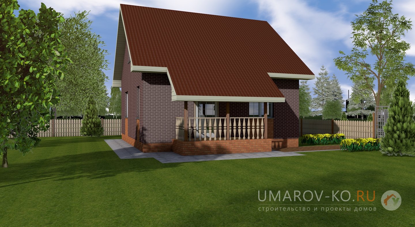 Проект небольшого дома для постоянного проживания либо основательного дома для садового участка. Безусловно, изюминкой проекта является второй свет с выходящим на него внутренним балконом!