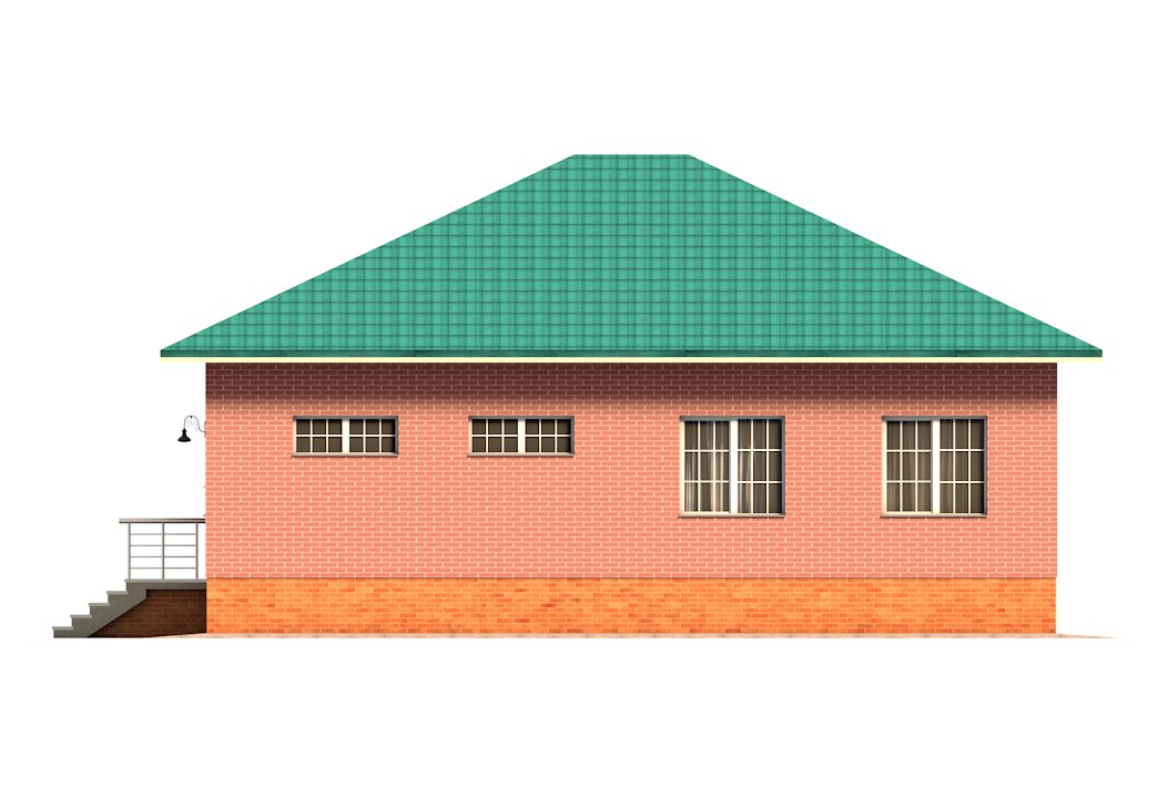 | Фасад | стены дома облицованы одинарным керамическим гладким кирпичом красного цвета. Цоколь выполнен из рядового красного кирпича под отделку камнем или штукатурку |