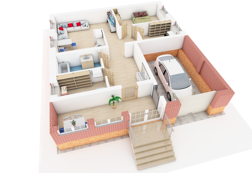 | 1 этаж | веранда, прихожая, холл, с/у - ванная, котельная (сауна), кухня, гостиная, 2 спальни, гараж |
