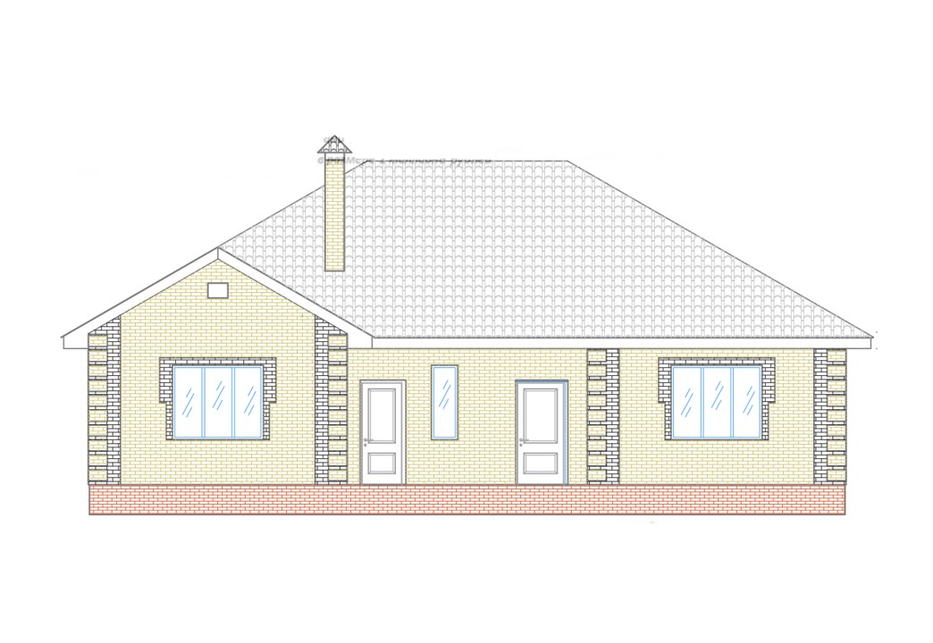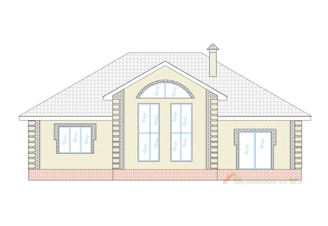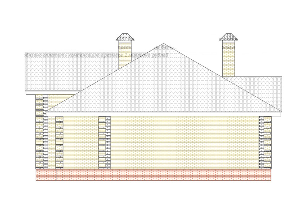 | Фасад | стены дома облицованы одинарным керамическим кирпичом ("солома" и "шоколад"). Цоколь выполнен из рядового красного кирпича под штукатурку или отделку камнем |