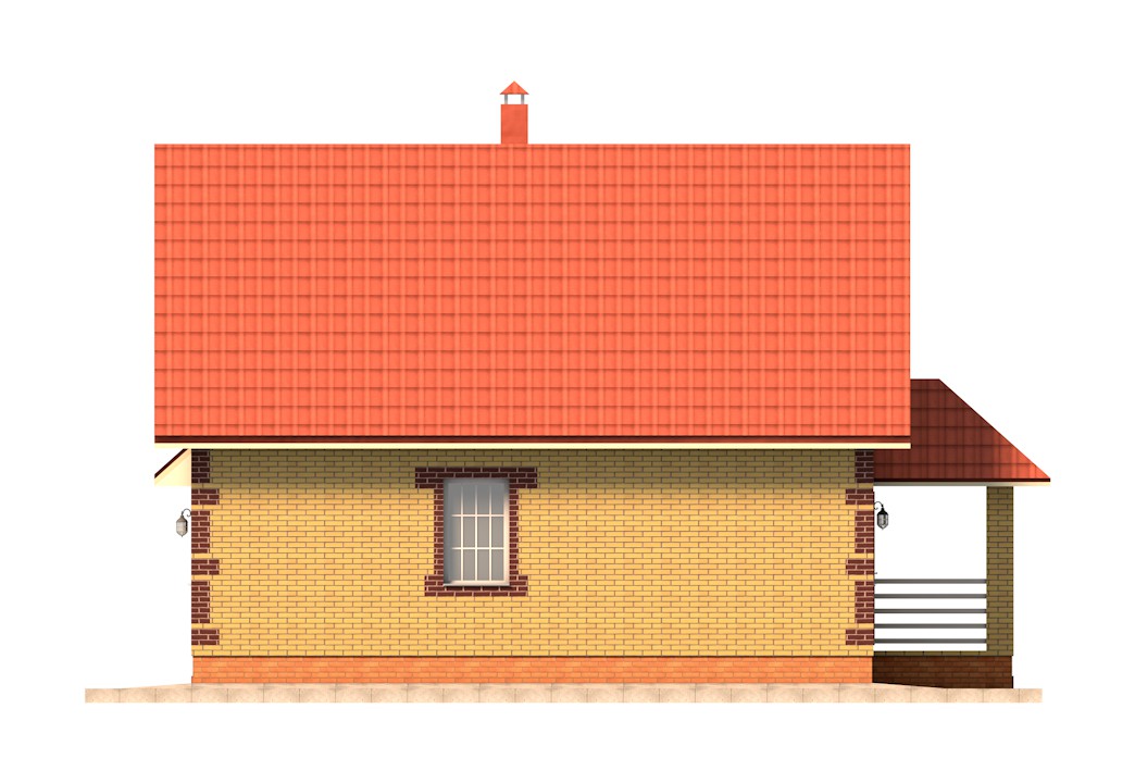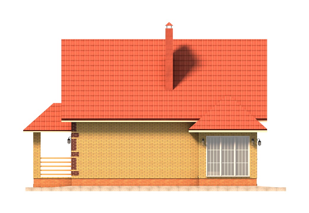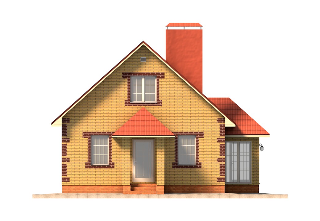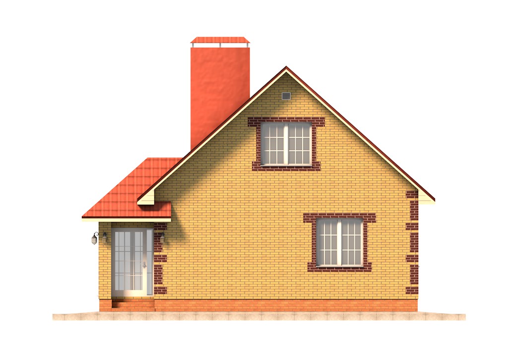 | Фасад | стены дома облицованы одинарным керамическим кирпичом желтого цвета (солома). Обрамление оконных проемов и узоры на углах дома выполнены облицовочным одинарным керамическим кирпичом коричневого цвета (шоколад). Цоколь выполнен из рядового красного кирпича. Каменные трубы обшиты листами металла под цвет кровли |
