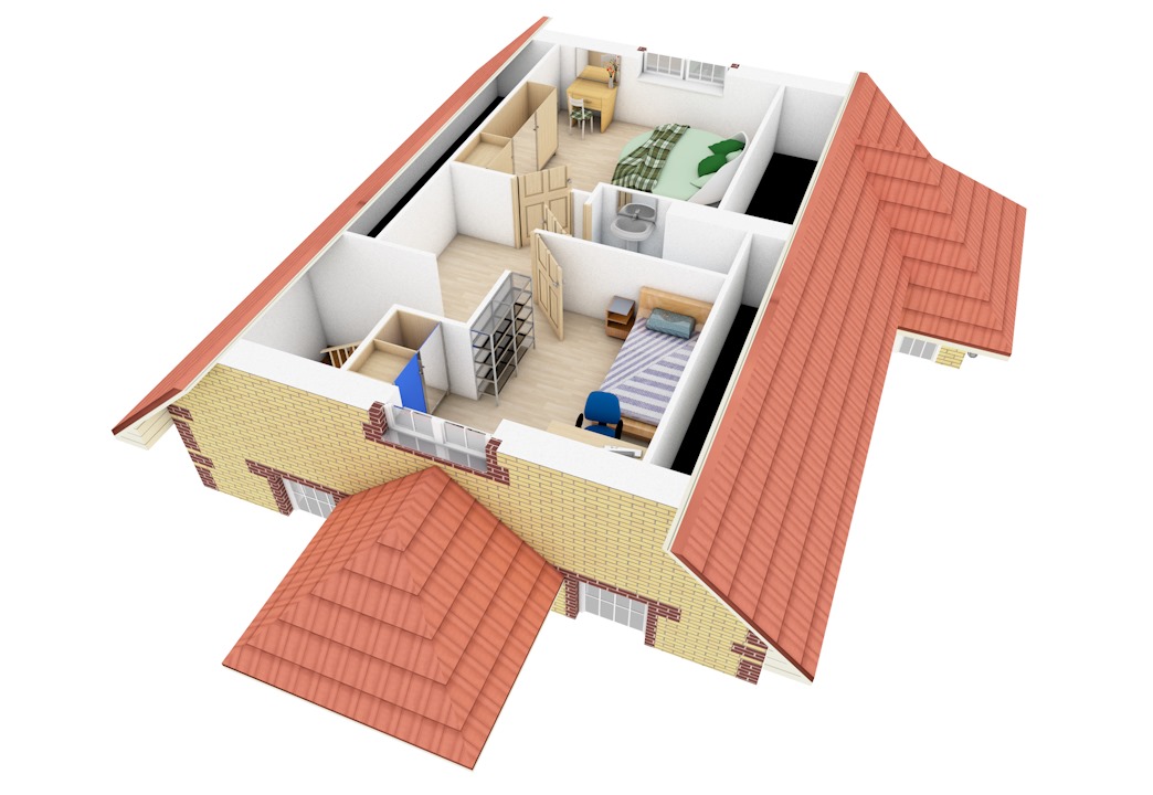 | 2 этаж | холл, с/у, 2 спальни |