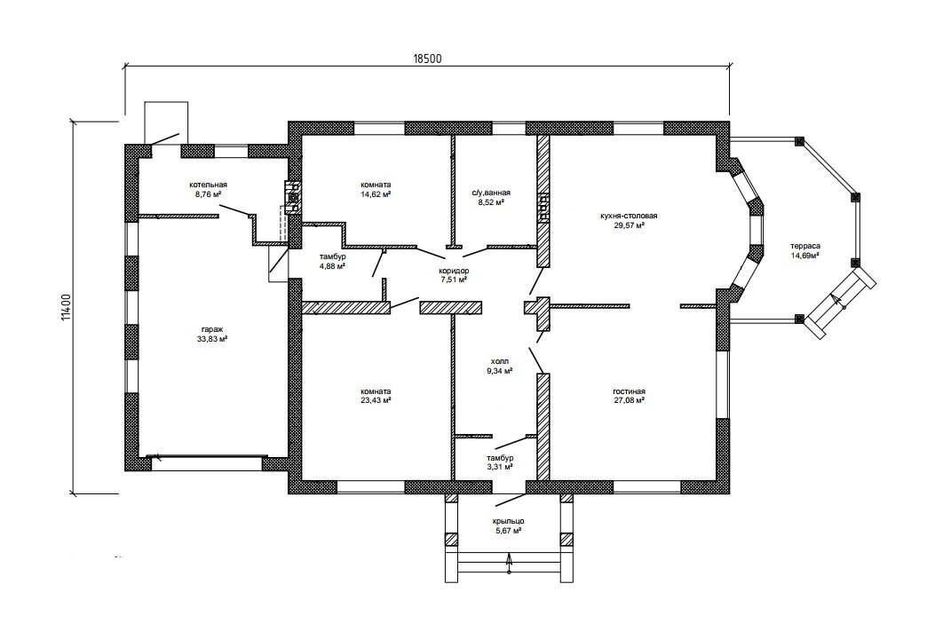 11,4 х 18,5 м