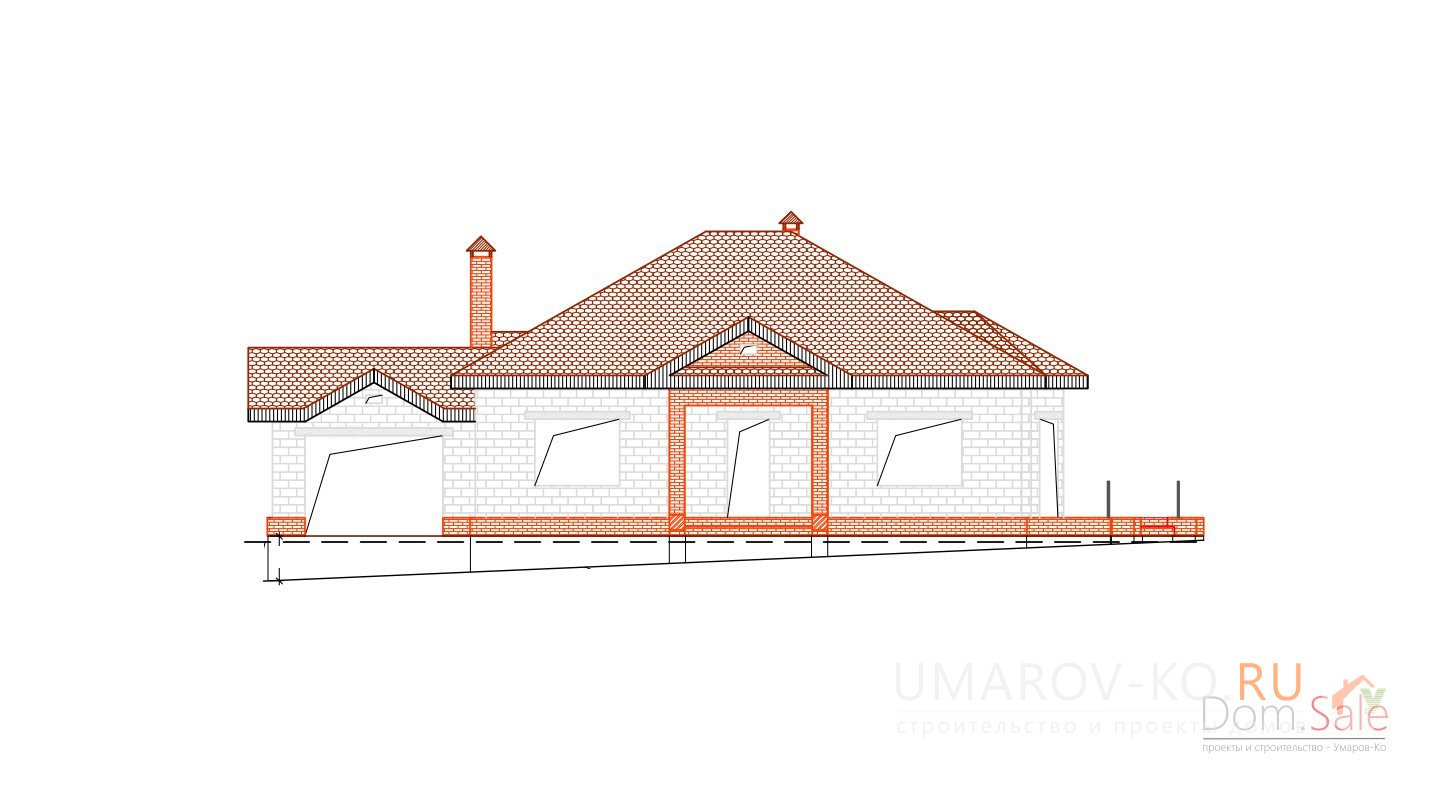 | Стены цоколя | рядовая кирпичная кладка с армированием под отделку камнем | |