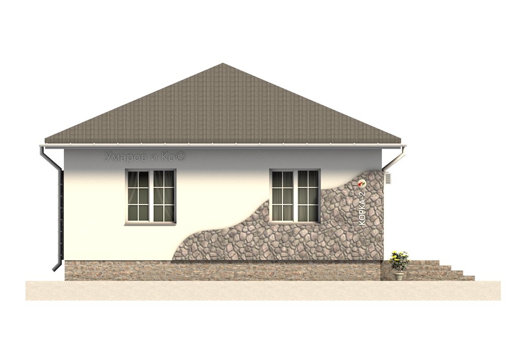 «Корка-2 без облицовки» - выгодный в строительстве и эксплуатации маленький одноэтажный дом оснащен всем необходимым для круглогодичного проживания. Комфорт в использовании помещений на одном уровне исключает необходимость перехода с этажа на этаж. Отсутствие несущих стен даёт возможность свободно менять планировку.