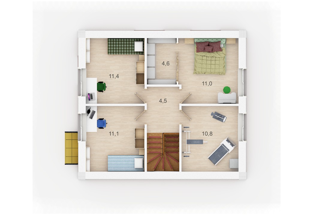 | 2 этаж | холл, гардеробная, 2 (или 4) спальни |