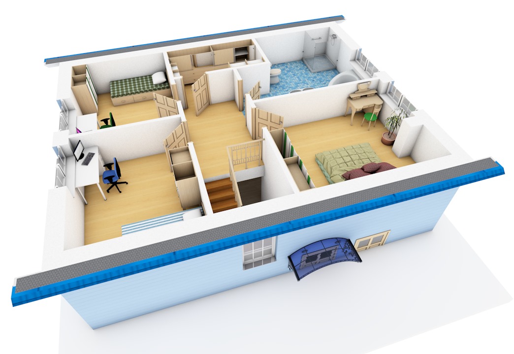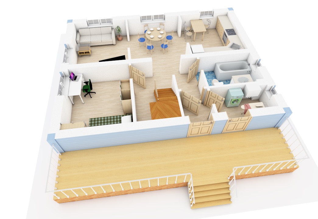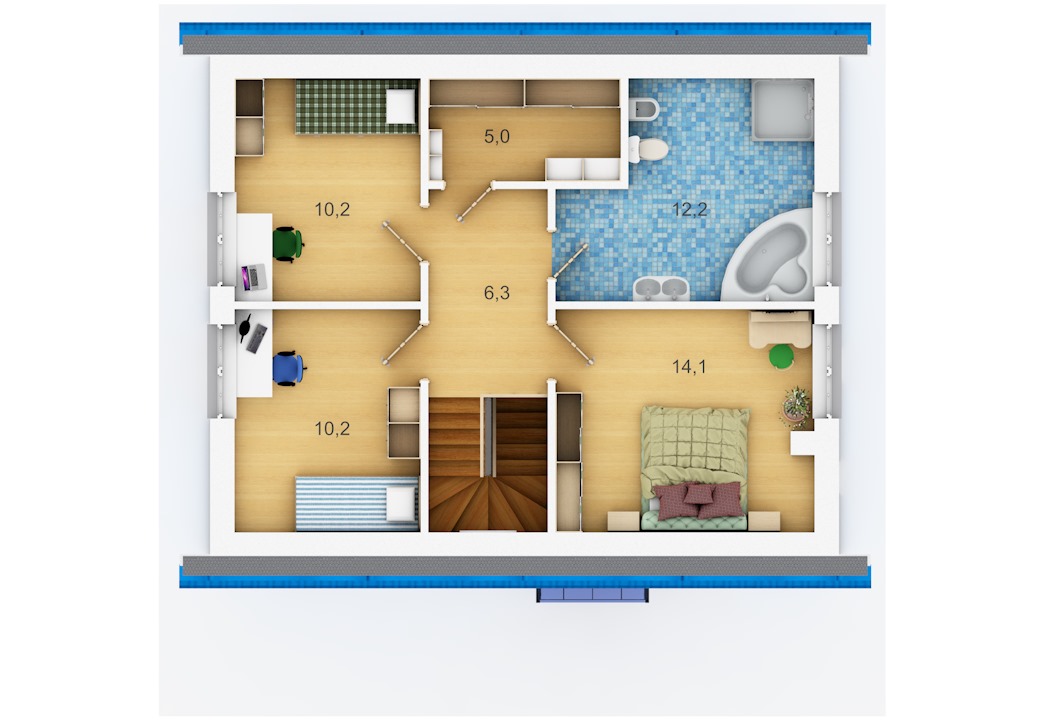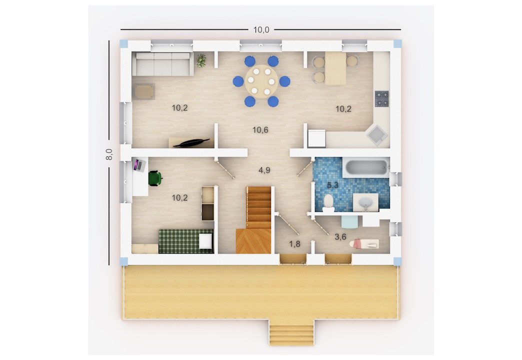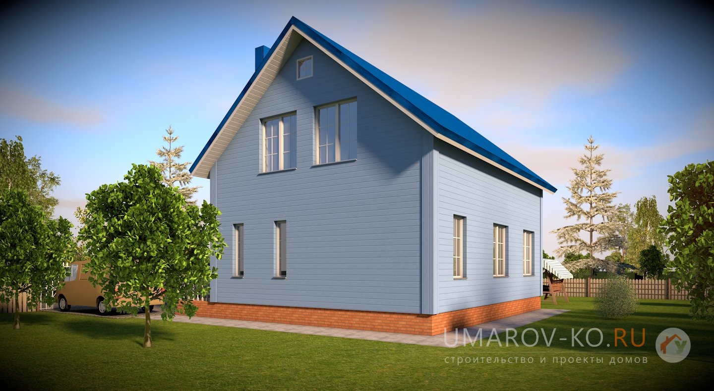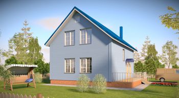 Хотите построить вместительный дом с большими светлыми комнатами по минимальной цене? Тогда Вам подойдёт проект «Коробок». Помимо визуально разделённых кухни-столовой-гостинной Вы получите 4 (!) изолированных комнаты, санузел на первом этаже и большую ванную комнату на втором. В проект включен фундамент шириной 2 метра под террасу на выходе из дома, который потом, при необходимости, можно завести под крышу или застеклить. В целом проект отличает отсутствие излишеств, простая прямоугольная форма в плане, обычная двускатная крыша.