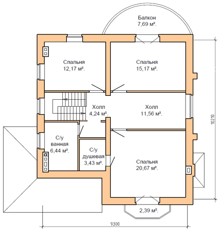 | 2 этаж | лестничный холл, холл, 3 спальни, с/у с душевой с входом из спальни хозяев, с/у с ванной, 2 балкона |