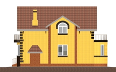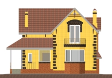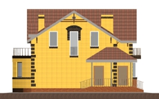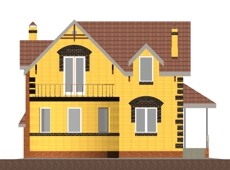 | Фасад | стены дома отделаны облицовочным кирпичом керамическим полуторным желтым, узоры выполнены из керамического полуторного коричневого кирпича (обрамление окон, карнизы, отделка углов). Цоколь, лопатки, балкон выполнены из керамического рядового простого кирпича, под декор |