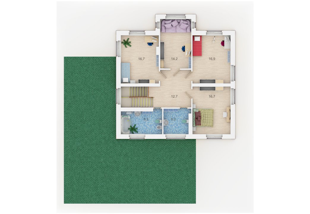 | 2 этаж | коридор, ванная, с/у, 4 спальни |