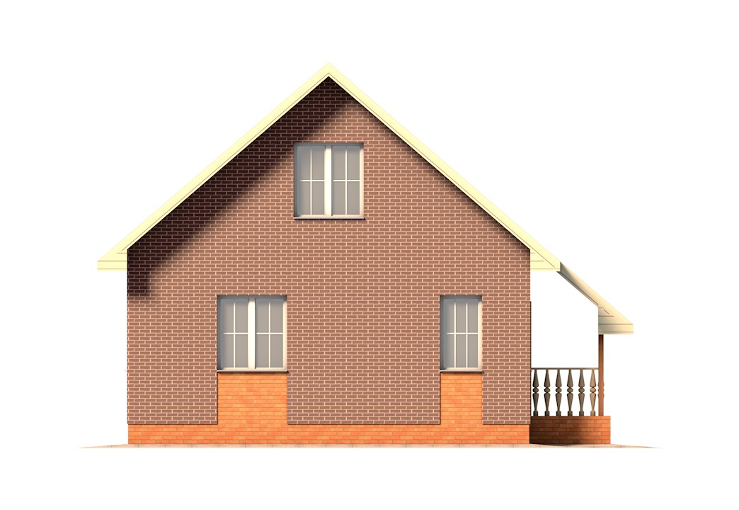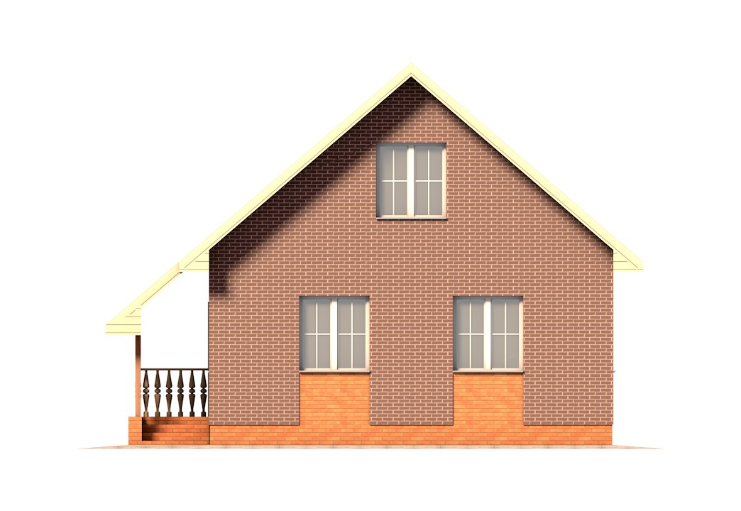 | Фасад | стены дома облицованы одинарным керамическим гладким кирпичом красного цвета. Цоколь выполнен из рядового красного кирпича под отделку камнем или штукатурку | |