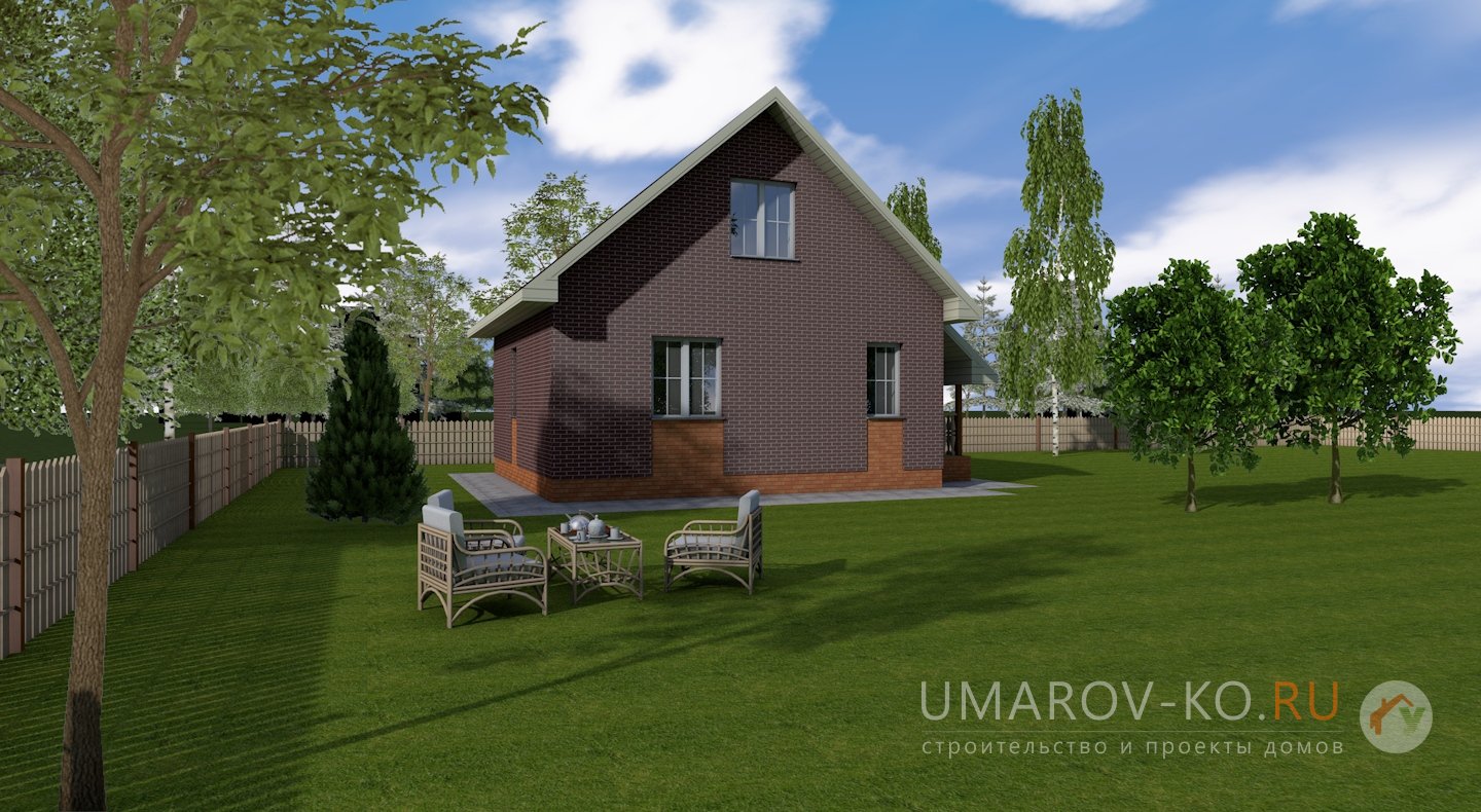 Проект небольшого дома для постоянного проживания либо основательного дома для садового участка. Безусловно, изюминкой проекта является второй свет с выходящим на него внутренним балконом!
