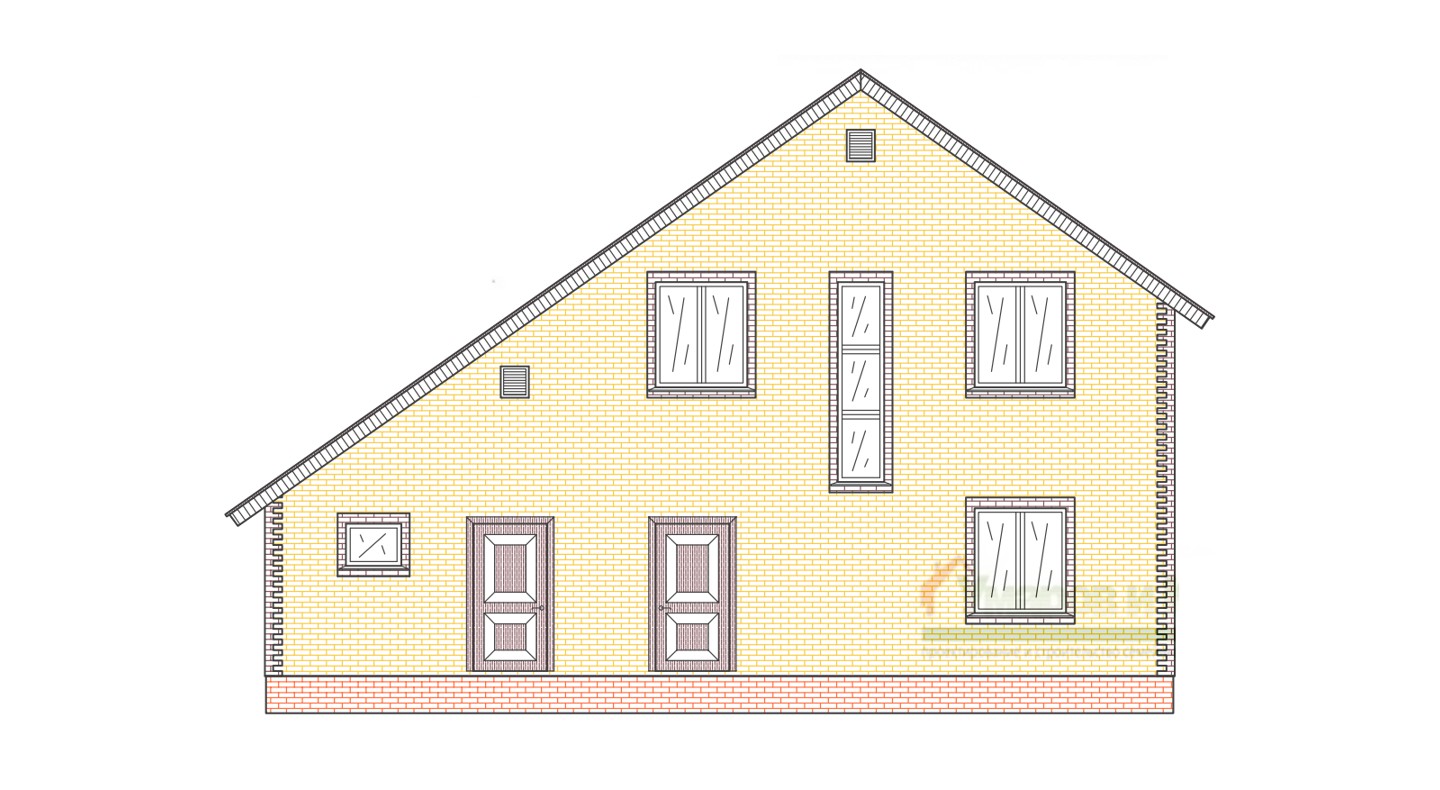 | Фасады | стены дома отделаны облицовочным одинарным кирпичом цвета "солома" и "шоколад". Цоколь выполнен из красного рядового кирпича под отделку камнем. |