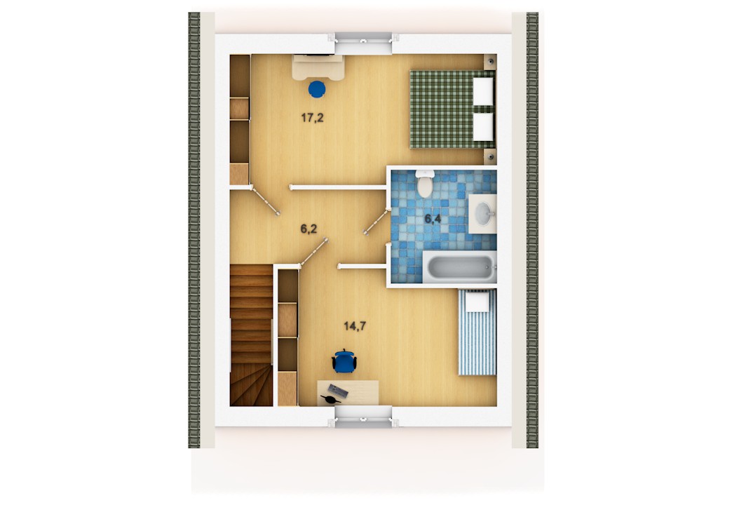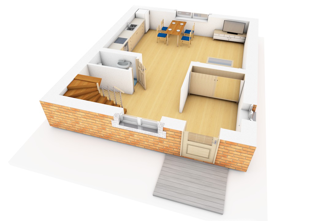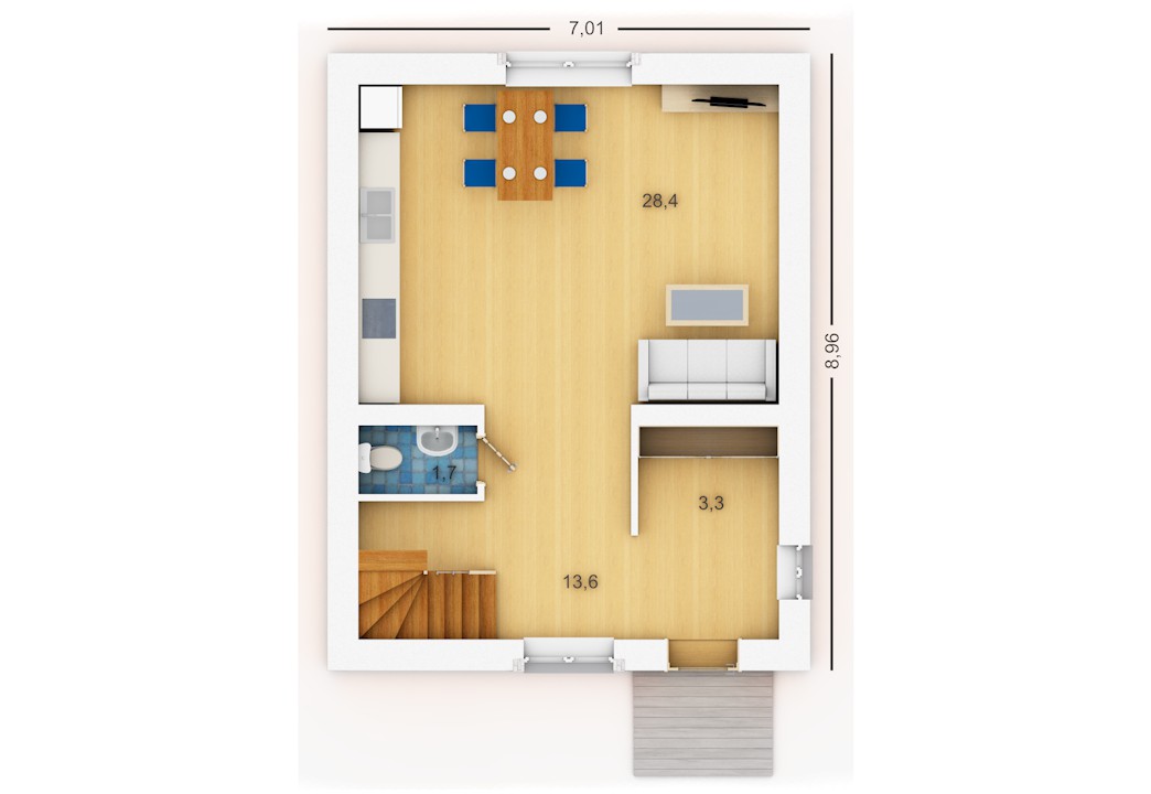 | 1 этаж | крыльцо, коридор, с/у, прихожая-гардеробная (или бойлерная), гостиная-столовая |