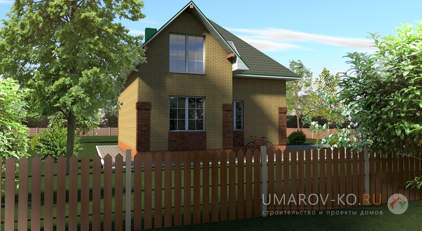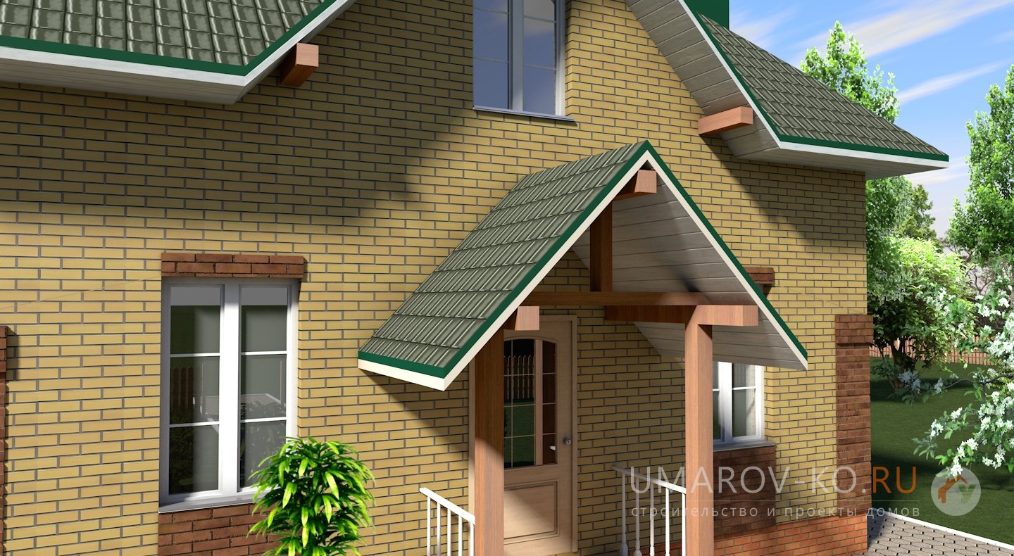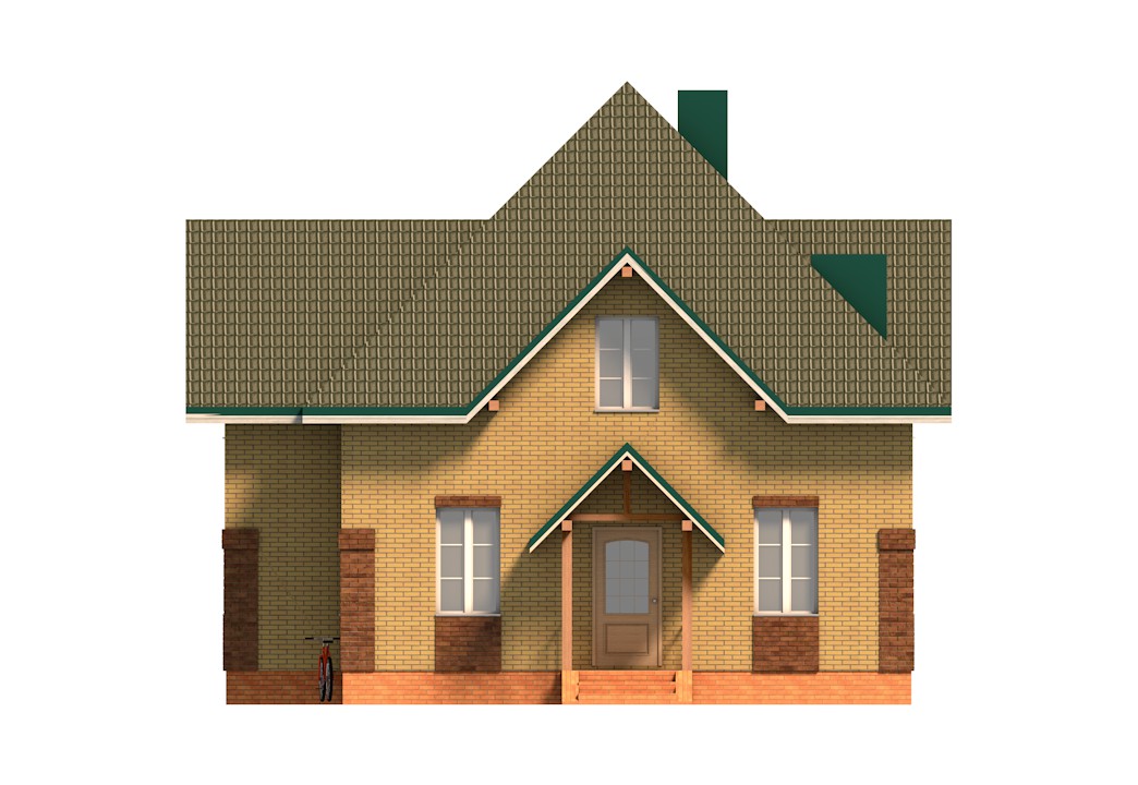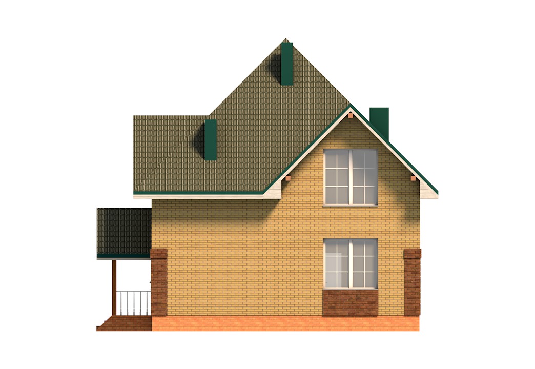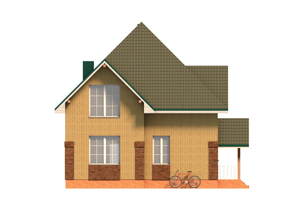 | Фасад | стены дома облицованы одинарным керамическим кирпичом желтого цвета. Обрамление углов дома до уровня второго этажа, карнизы оконных проемов, участки фасада под окнами первого этажа облицованы одинарным керамическим коричневым кирпичом. Цоколь из красного кирпича, рядового под отделку декоративным камнем. Крыльцо оформлено деревянными стойками. Каменные трубы обшиты металлическими листами под цвет кровли. Мансардные окна - по месту. |