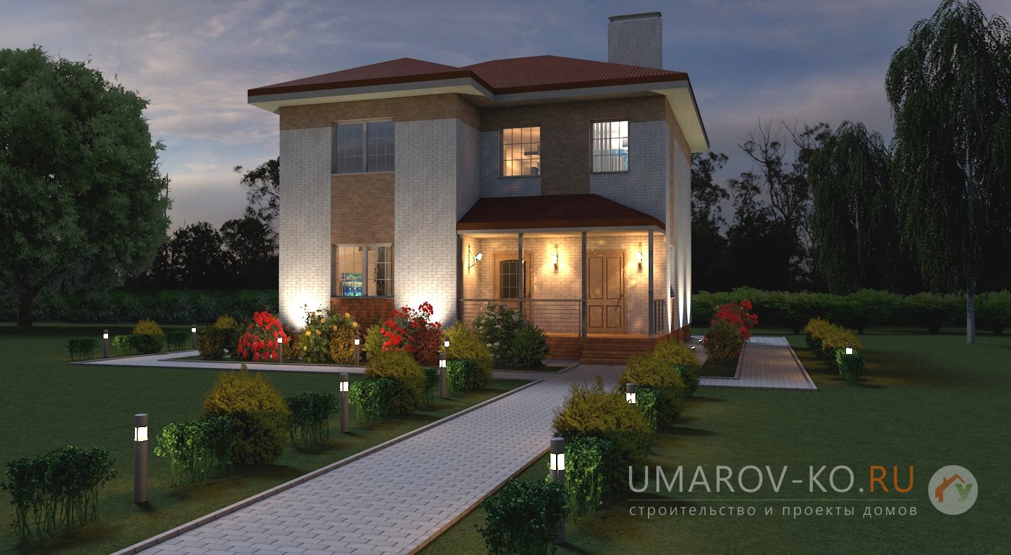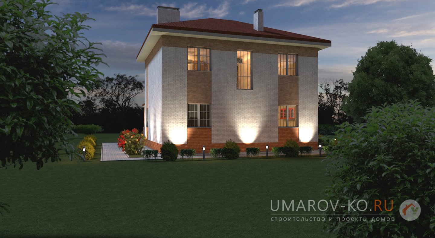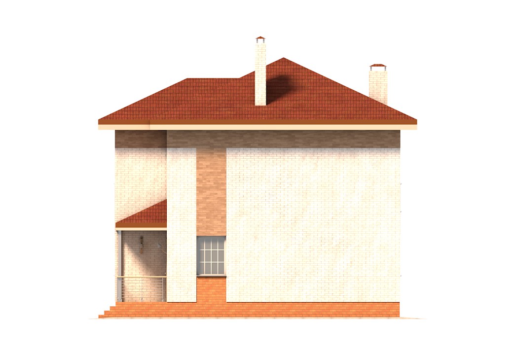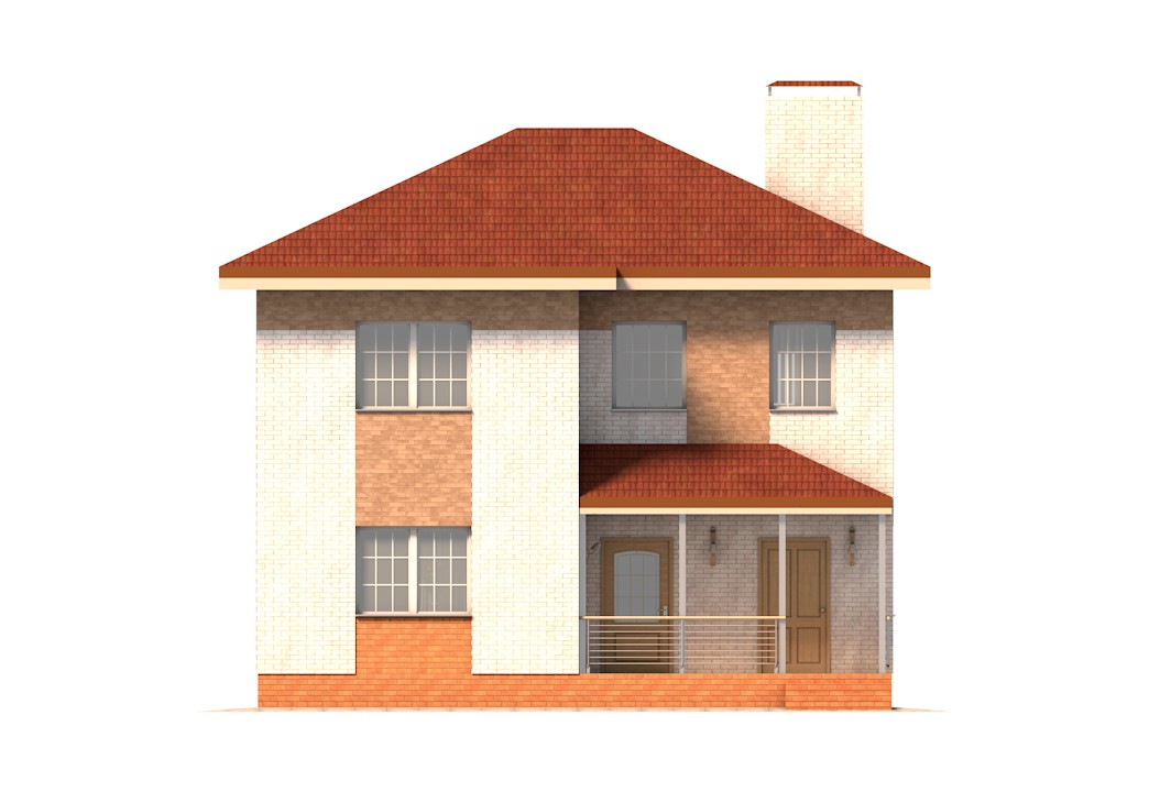 | Фасад | стены дома отделаны облицовочным одинарным керамическим кирпичом цвета "солома". Обрамления оконных и дверных проёмов выполнены из керамического одинарного лицевого кирпича цвета "шоколад". Цоколь выполнен из рядового красного кирпича под отделку камнем. |