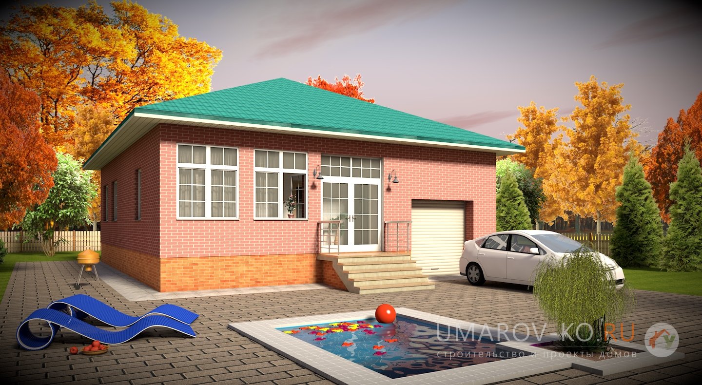 «Изаура» - одноэтажный дом имеет всё необходимое для проживания или отдыха небольшой семьи. Котельную при желании можно переоборудовать в сауну. Это один из самых маленьких проектов со встроенным гаражом.