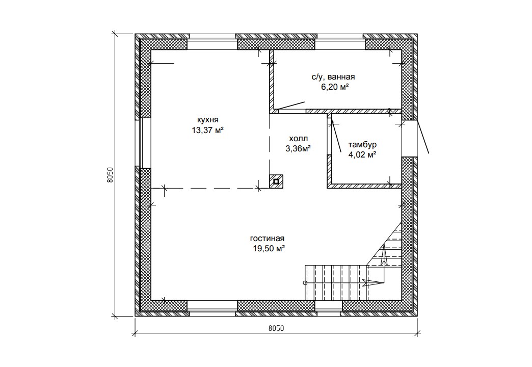 | 1 этаж | тамбур, холл, с/у-ванная, кухня, гостиная |