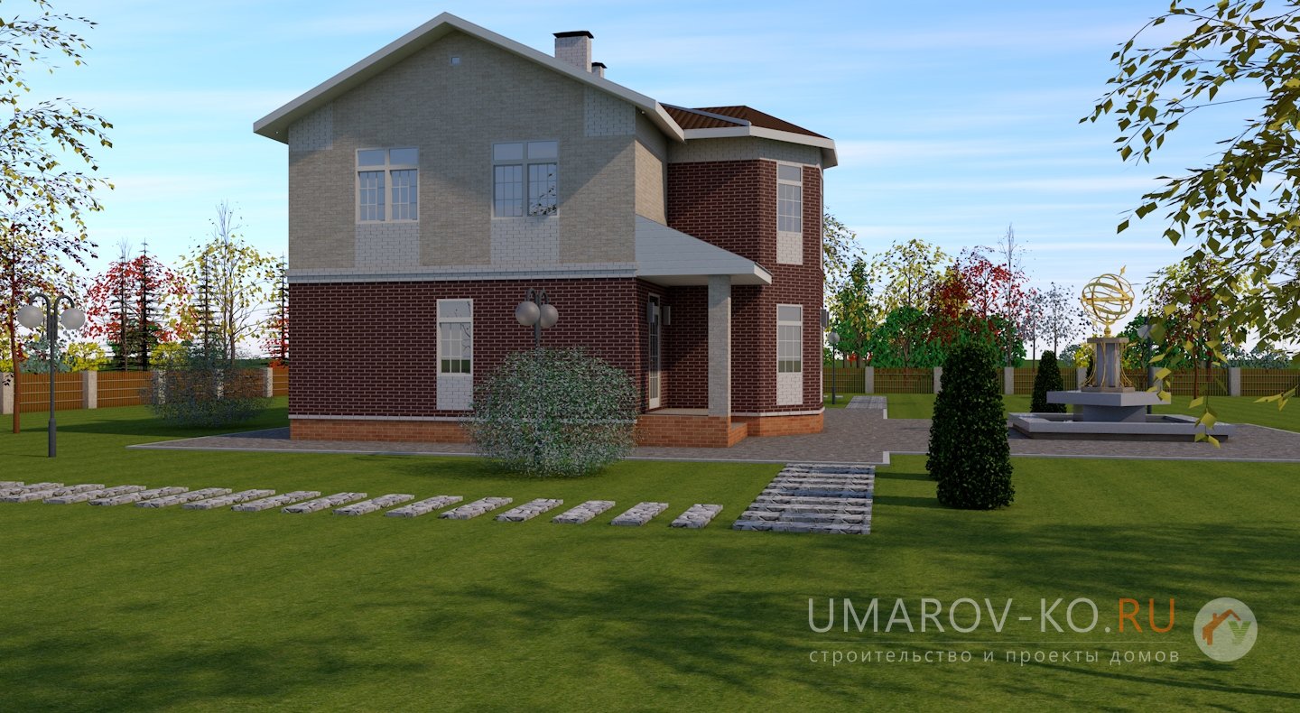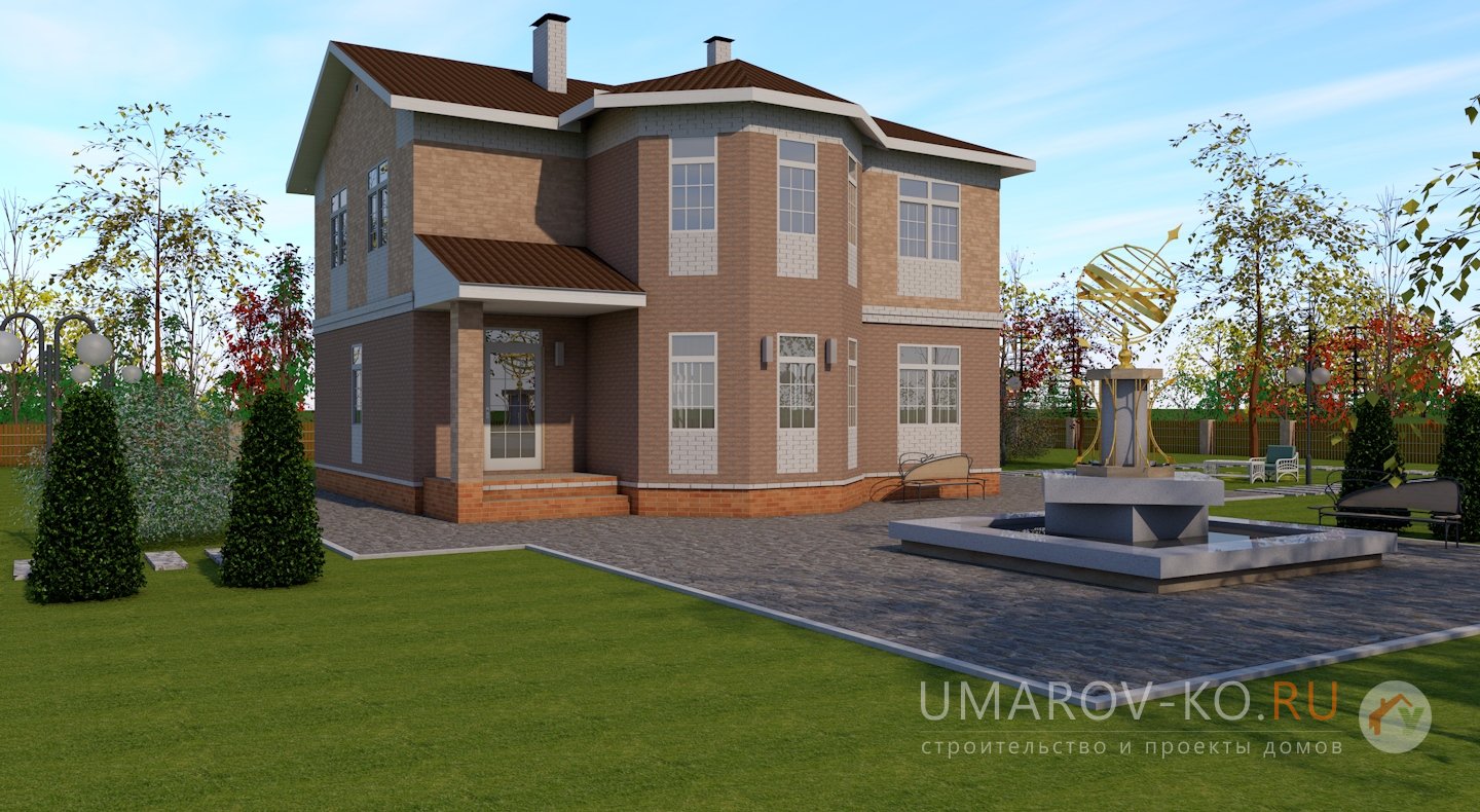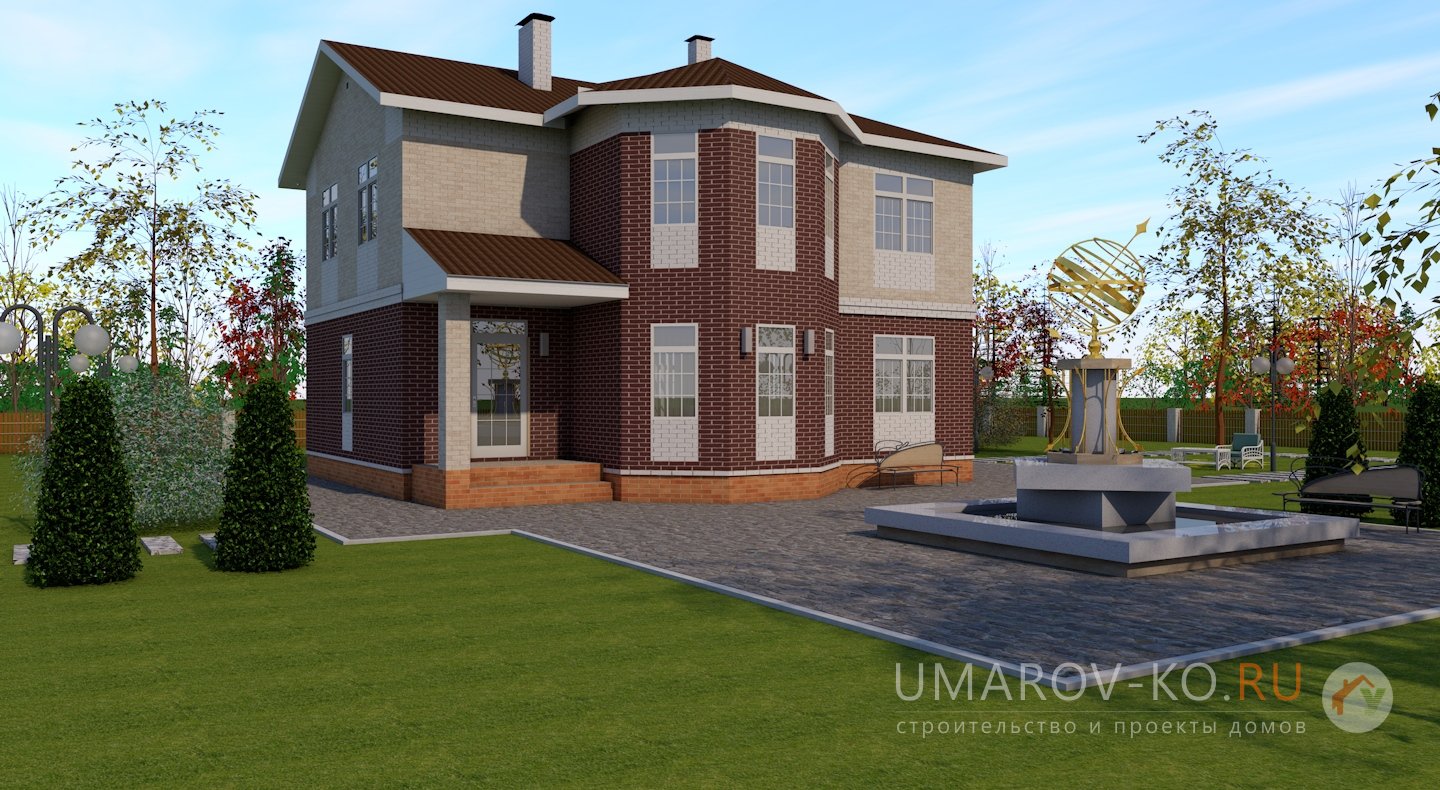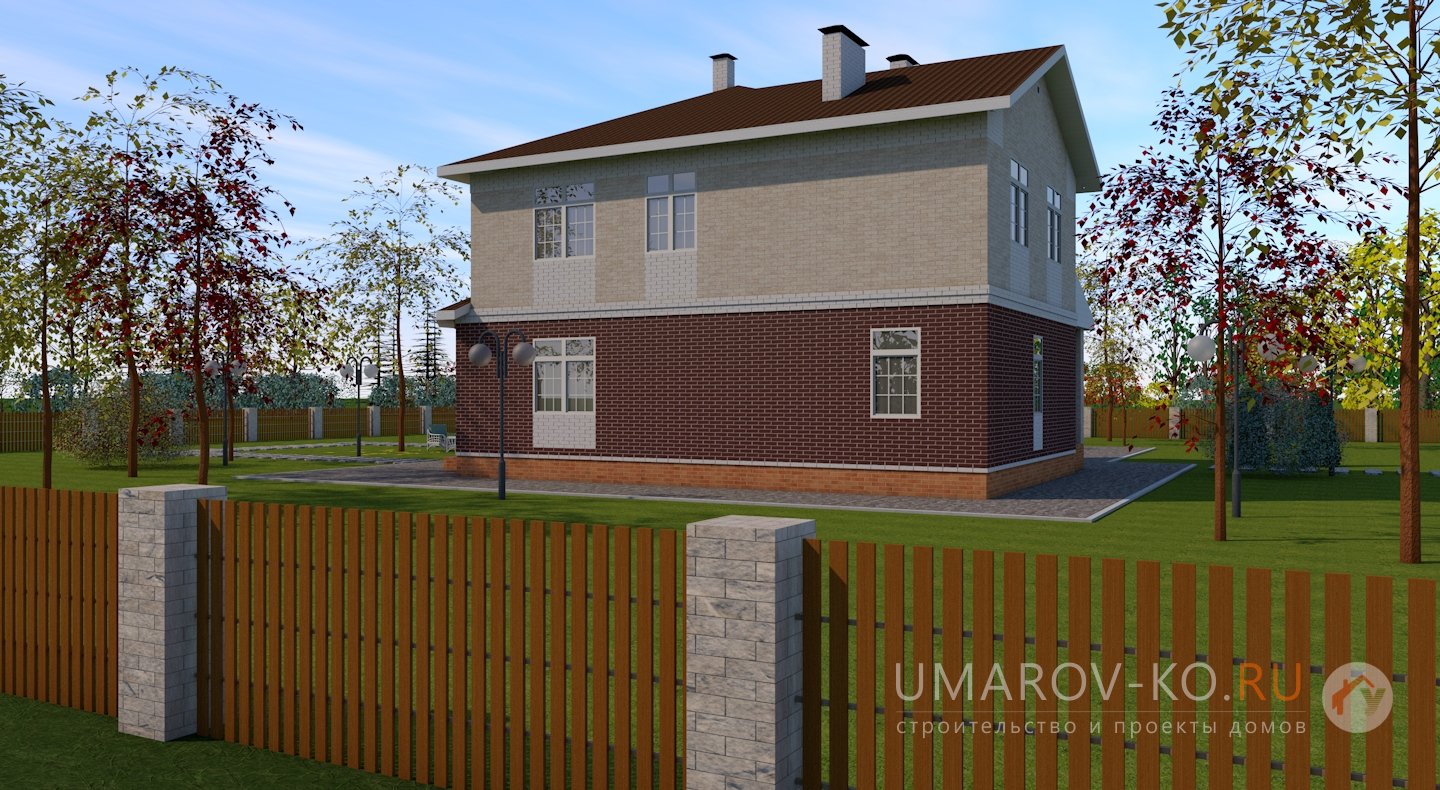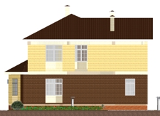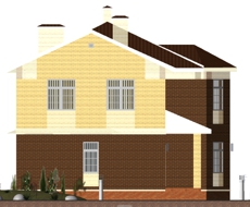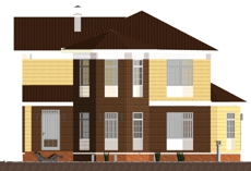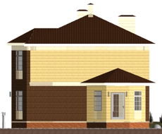 | Фасад | стены дома отделаны лицевым одинарным керамическим кирпичом. Основные цвета кирпича "шоколад" (1 этаж и эркер), "солома" (2 этаж). Узоры из одинарного керамического кирпича белого цвета. Цоколь выполнен из рядового кирпича под отделку камнем |