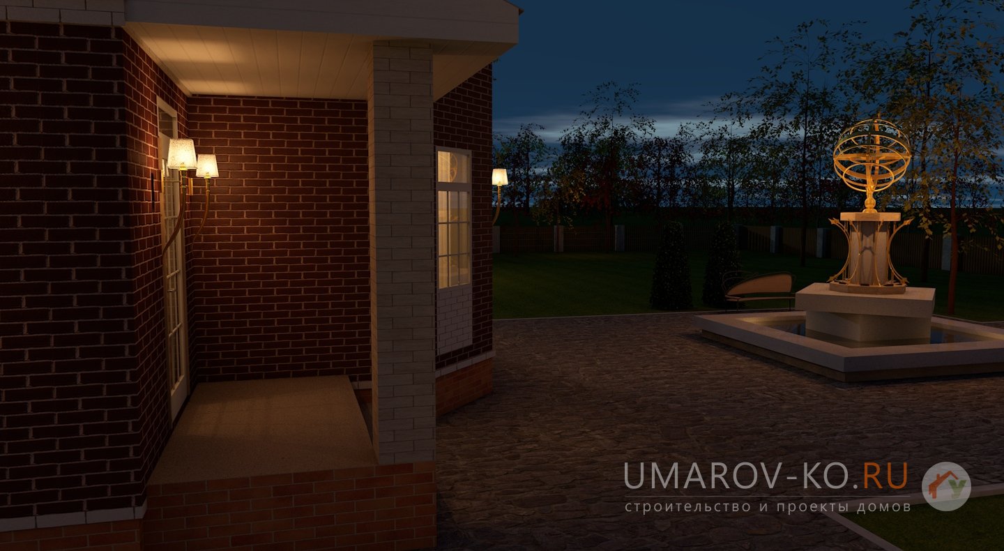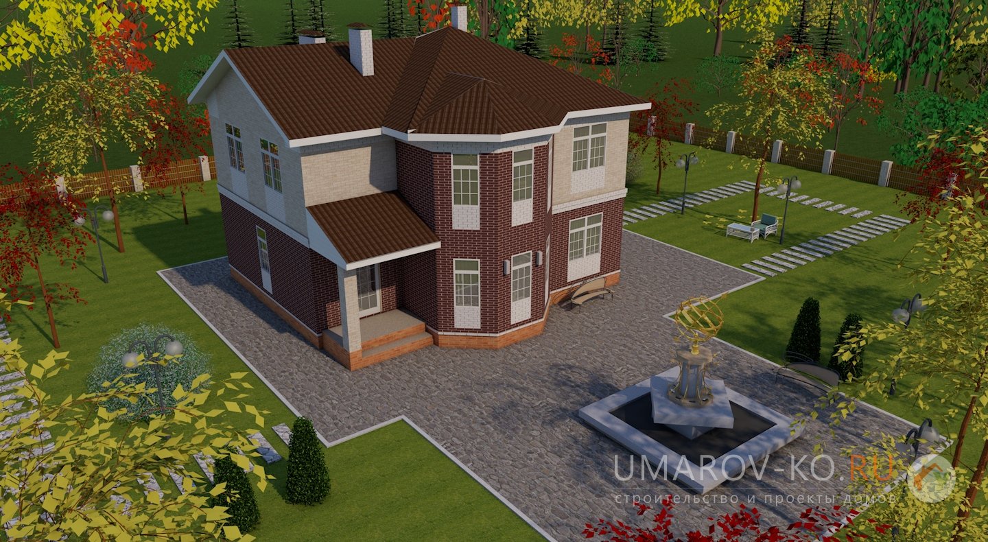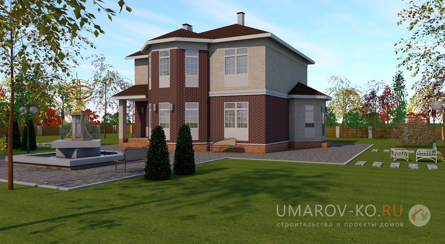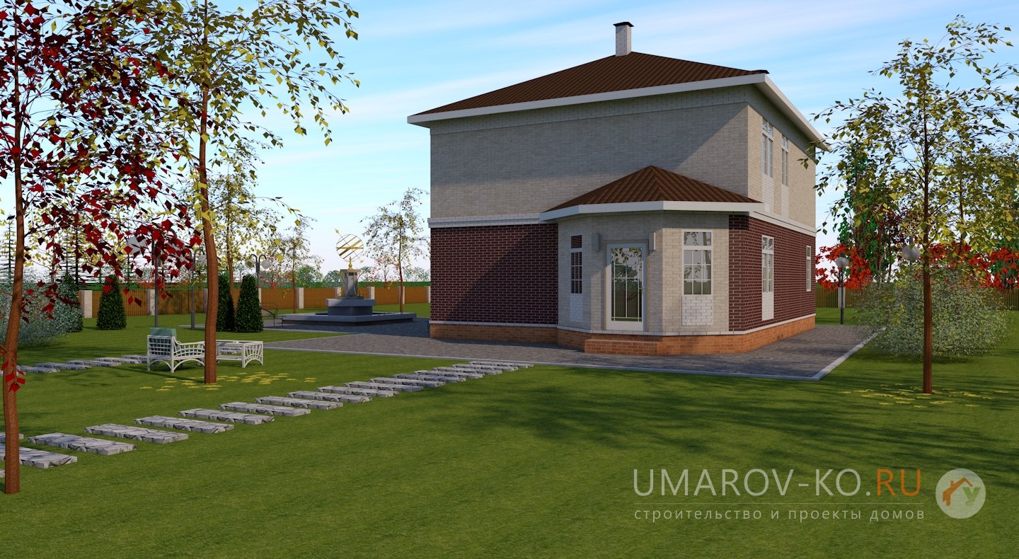 | Фасад | стены дома отделаны лицевым одинарным керамическим кирпичом. Основные цвета кирпича "шоколад" (1 этаж и эркер), "солома" (2 этаж). Узоры из одинарного керамического кирпича белого цвета. Цоколь выполнен из рядового кирпича под отделку камнем |