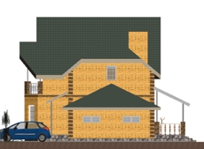 | Фасад | cтены дома отделаны гладким лицевым кирпичом. Узоры и столбы выполнены из рваного кирпича. Цоколь - из красного кирпича, рядового |