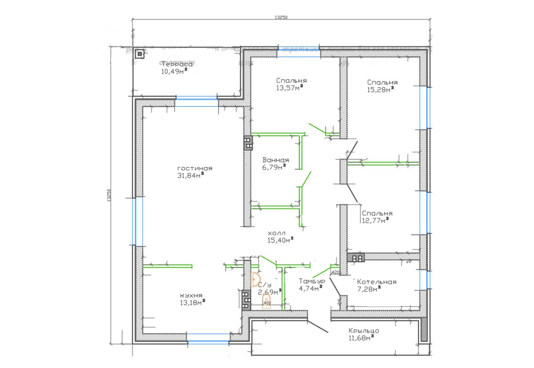 13,25 х 13,25 м