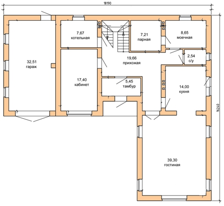 | 1 этаж | тамбур, прихожая, парная, моечная, с/у, кухня, гостиная, котельная, кабинет, гараж | |