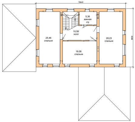 | 2 этаж | холл, ванная + с/у, 3 спальни |