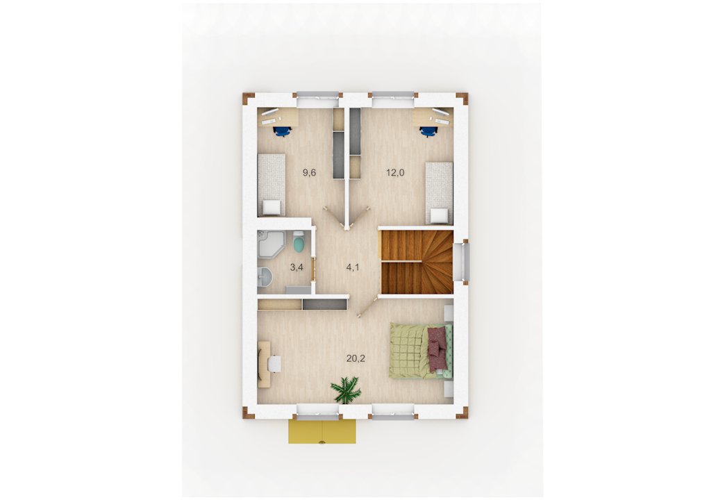 | 2 этаж | холл, с/у + ванная, 3 спальни |