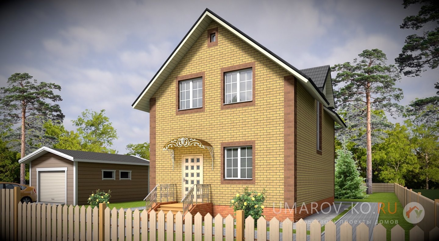 | Фасады | стены дома отделаны керамическим полуторным кирпичом цвета "солома". Обрамление углов, дверных и оконных проёмов выполнено из керамического полуторного кирпича цвета "шоколад". Цоколь из красного кирпича рядового. |