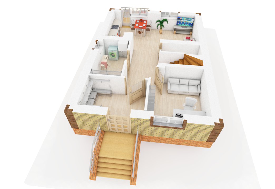 | 1 этаж | прихожая, холл, котельная (хозяйственное помещение или сауна с санузлом), кабинет, кухня, гостиная |