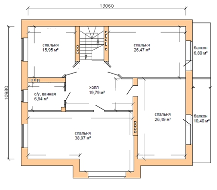 | 2 этаж | холл, с/у+ванная, 4 спальни, 2 балкона |