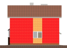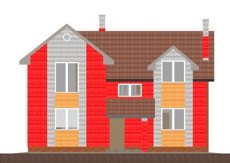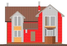 | Фасад | стены дома отделаны силикатным облицовочным кирпичом красного цвета, элементы фасада - из белого и желтого силикатного облицовочного кирпича. Эркер выполнен из керамического рядового кирпича под отделку камнем. Цоколь из красного кирпича, рядового |