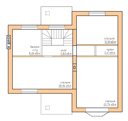 | 2 этаж | холл, гардеробная, ванная + с/у, 3 спальни |