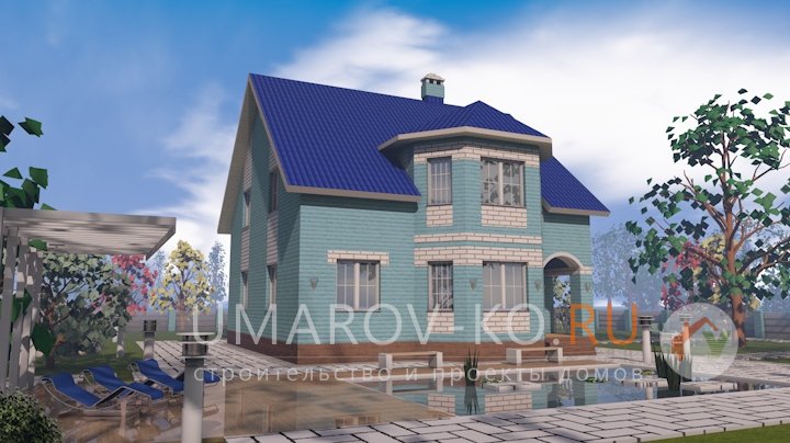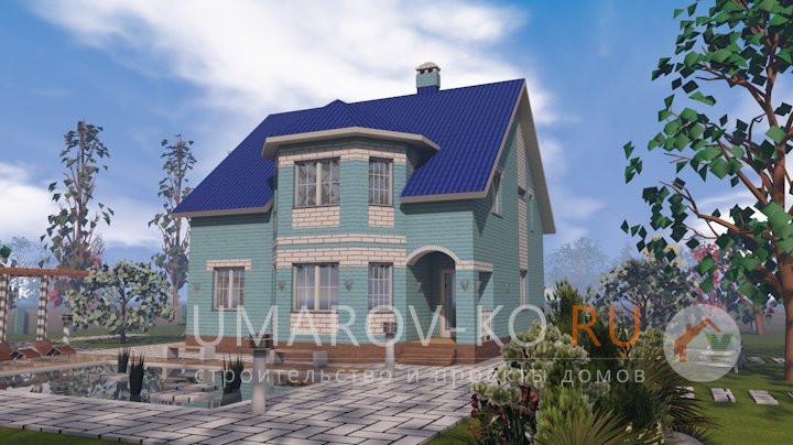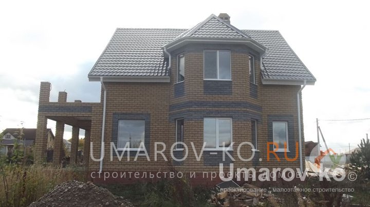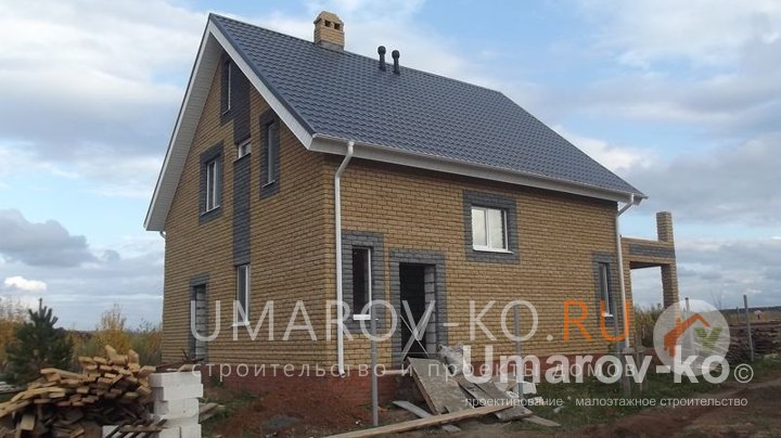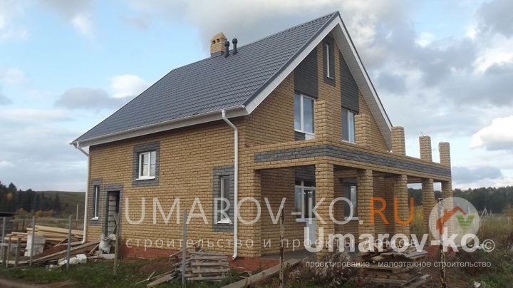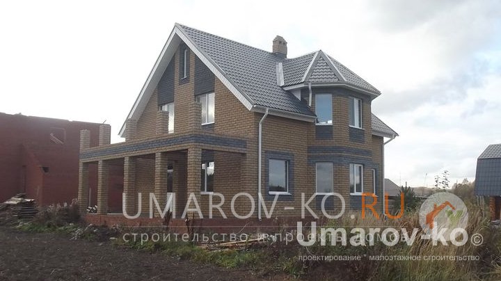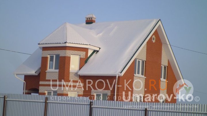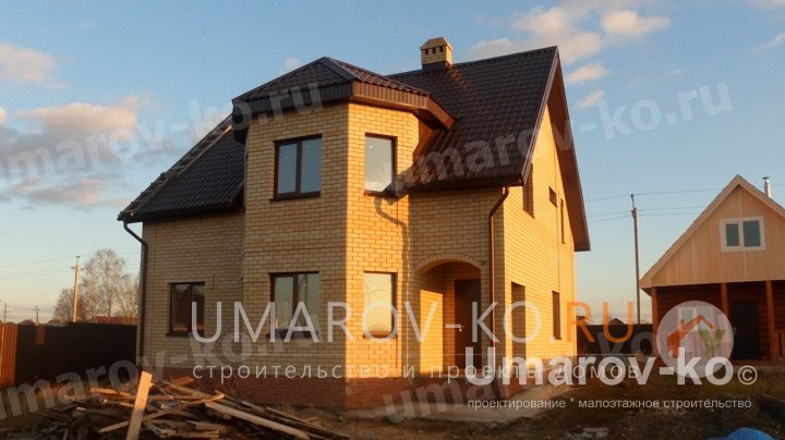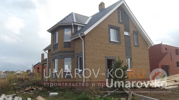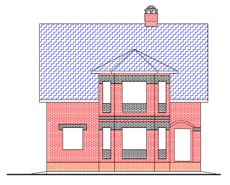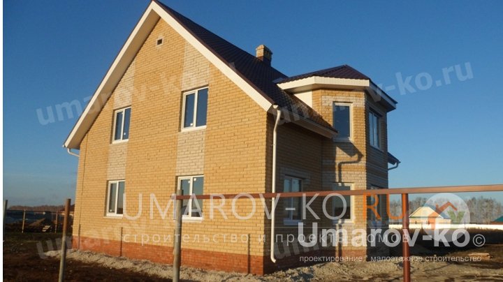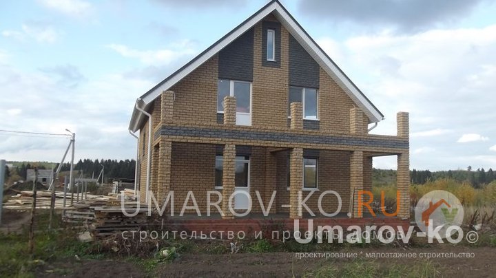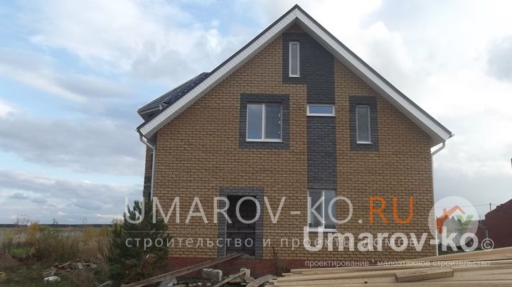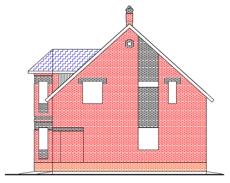 | Фасад | стены дома облицованы одинарным керамическим гладким кирпичом; цоколь выполнен из рядового красного кирпича под отделку камнем или штукатурку |