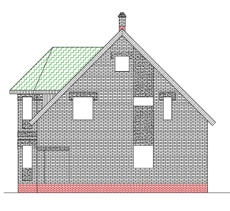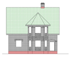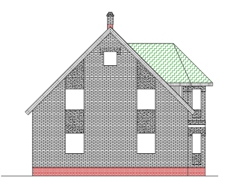 | Фасад | стены дома отделаны одинарным облицовочным кирпичом красного цвета. Элементы фасада (карнизы окон, элементы эркера, узоры) - из силикатного белого рядового облицовочного кирпича. Цоколь из красного кирпича, рядового |