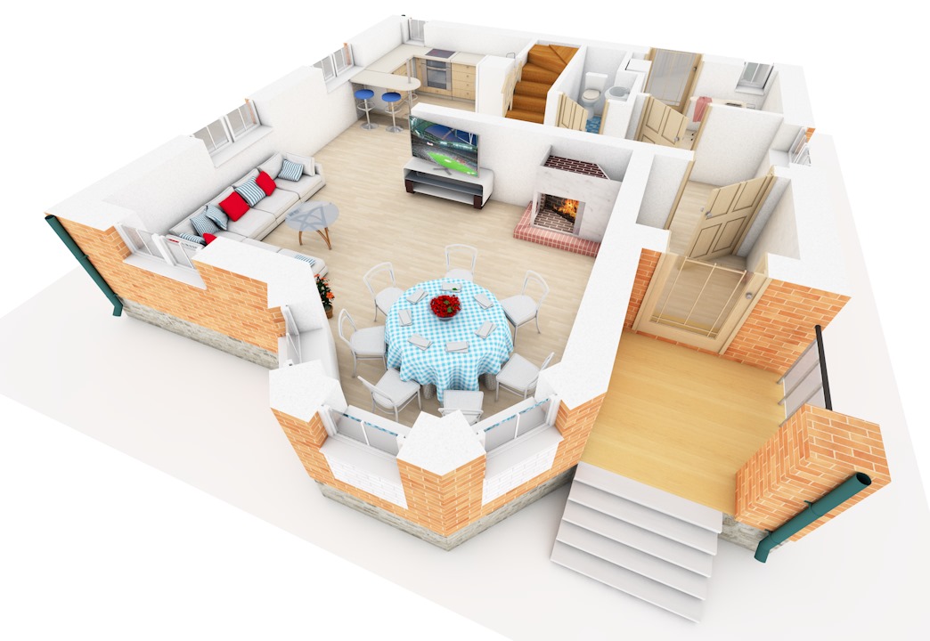 | 1 этаж | прихожая, коридор, котельная, с/у, кухня, гостиная |