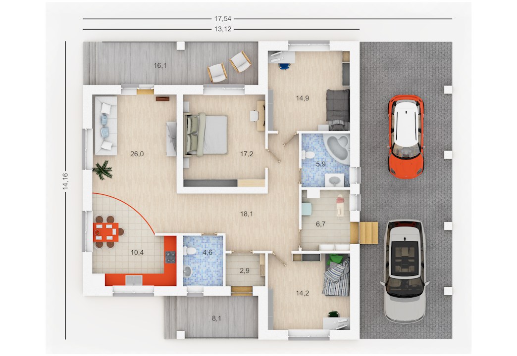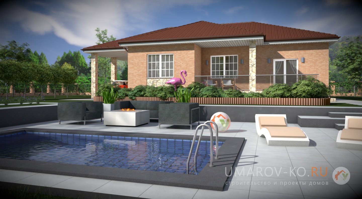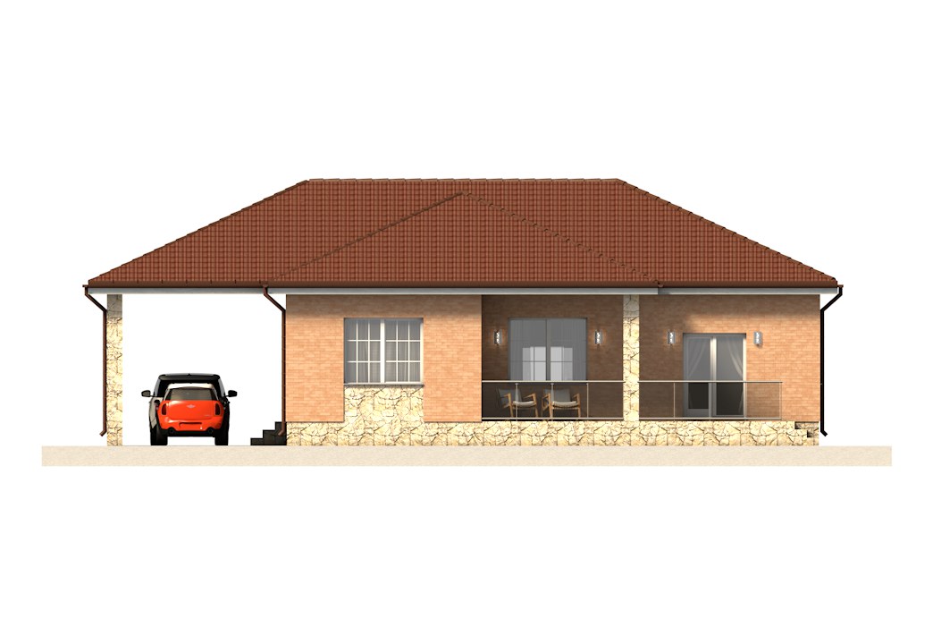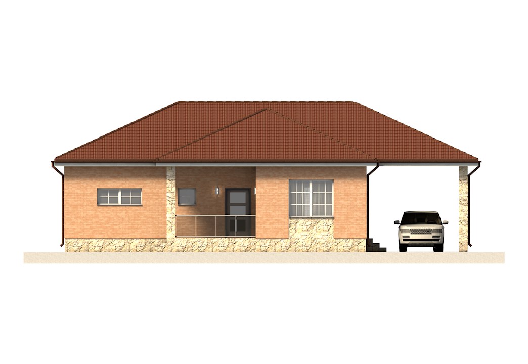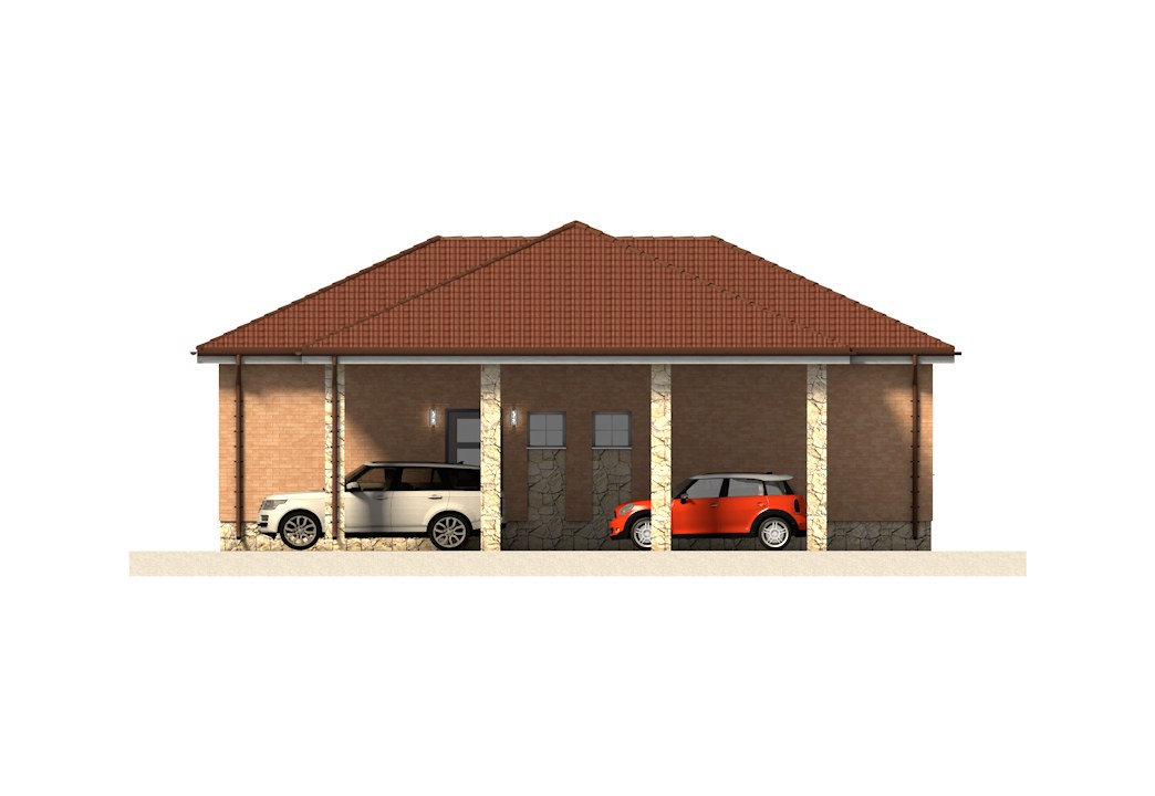 «Прикамье» - одноэтажный дом предложит преимущества одноуровневых конструкций: быстрый и удобный доступ к любому помещению, отсутствие необходимости пользоваться лестницей соединяющей два этажа, что немаловажно для семей с маленькими детьми и пожилых людей. Отдельный переход в дом предусмотрен из под навеса через хозяйственно-техническое помещение, что упрощает распаковку покупок и складирование запасов. Крытая терраса станет прекрасным местом для летнего отдыха рядом с домом и служит дополнительным выходом в сад.