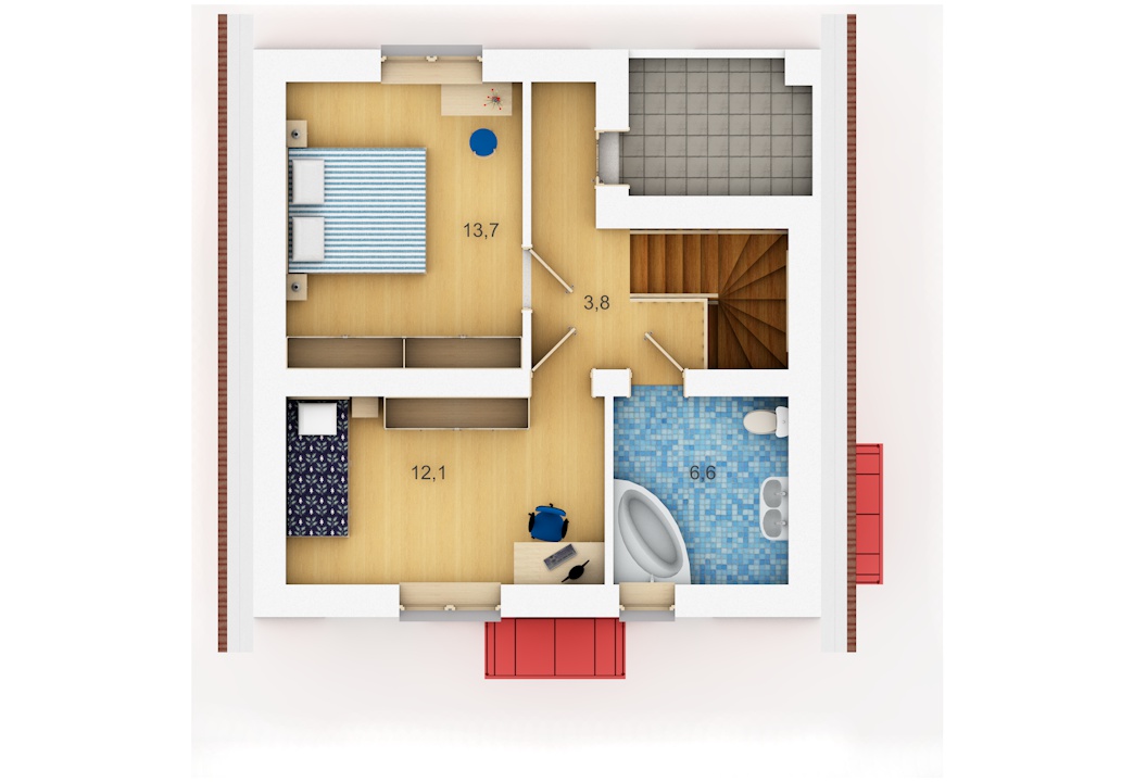 | 2 этаж | лестничный холл, с/у с ванной, 2 спальни, лоджия |