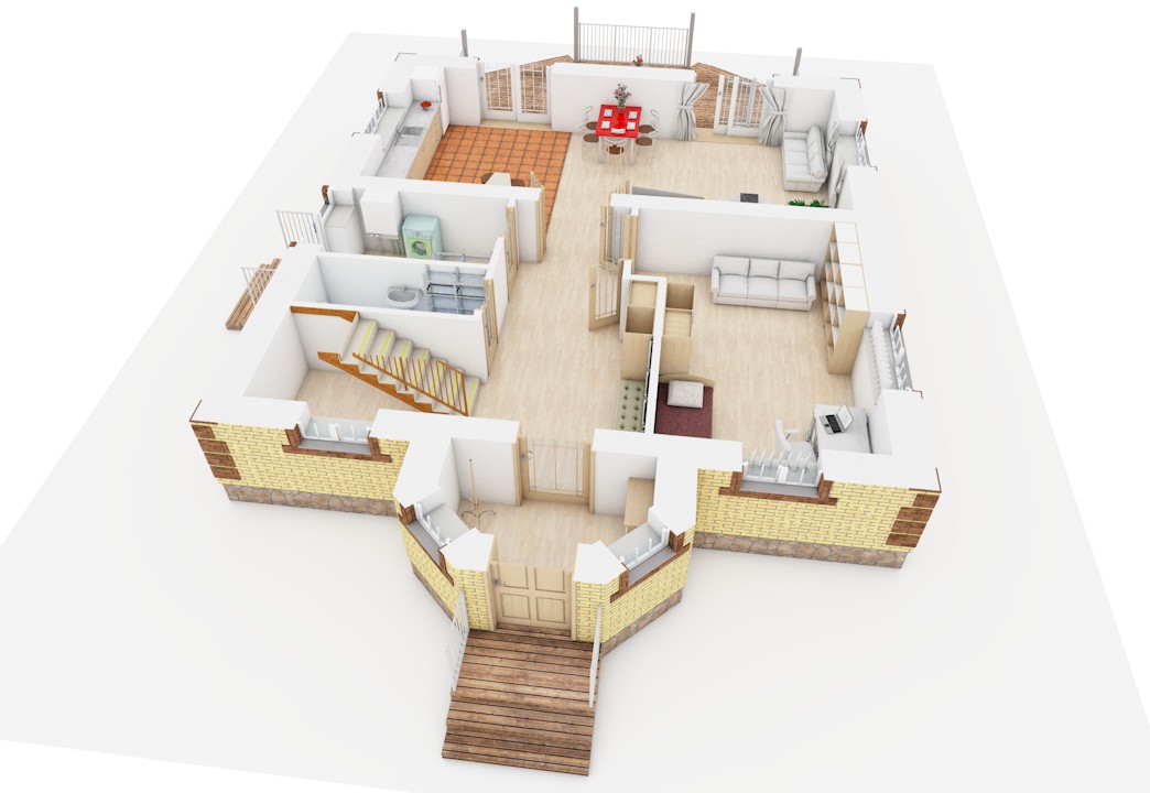 | 1 этаж | тамбур, холл-коридор, топочная (сауна), с/у, жилая комната, кухня, гостиная, терраса | |