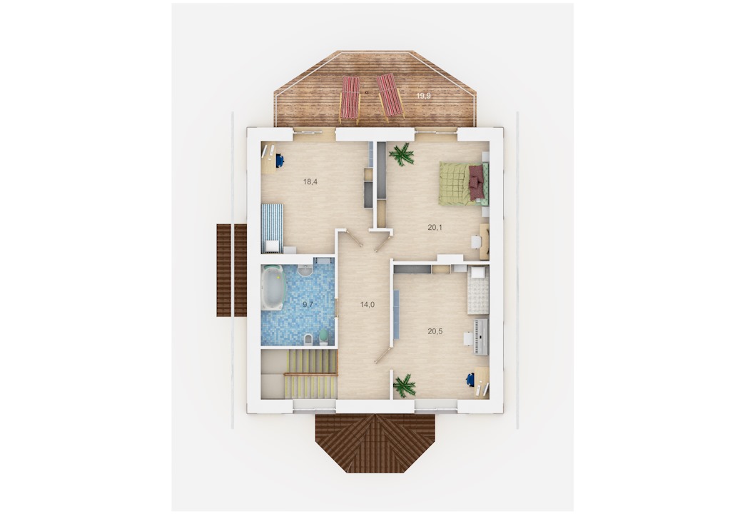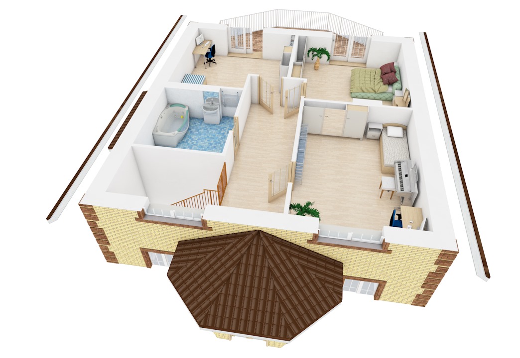 | 2 этаж | холл-коридор, ванная, 3 спальни, балкон |
