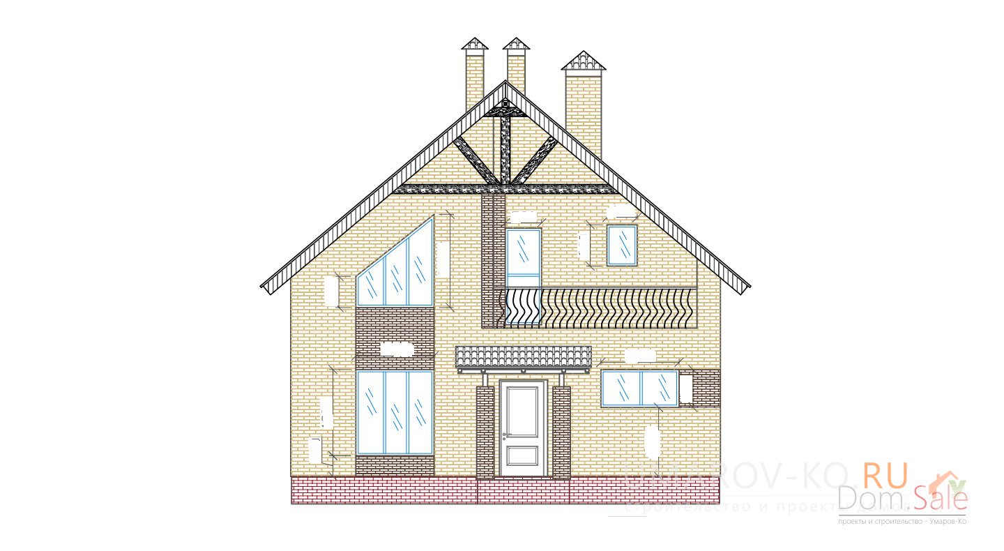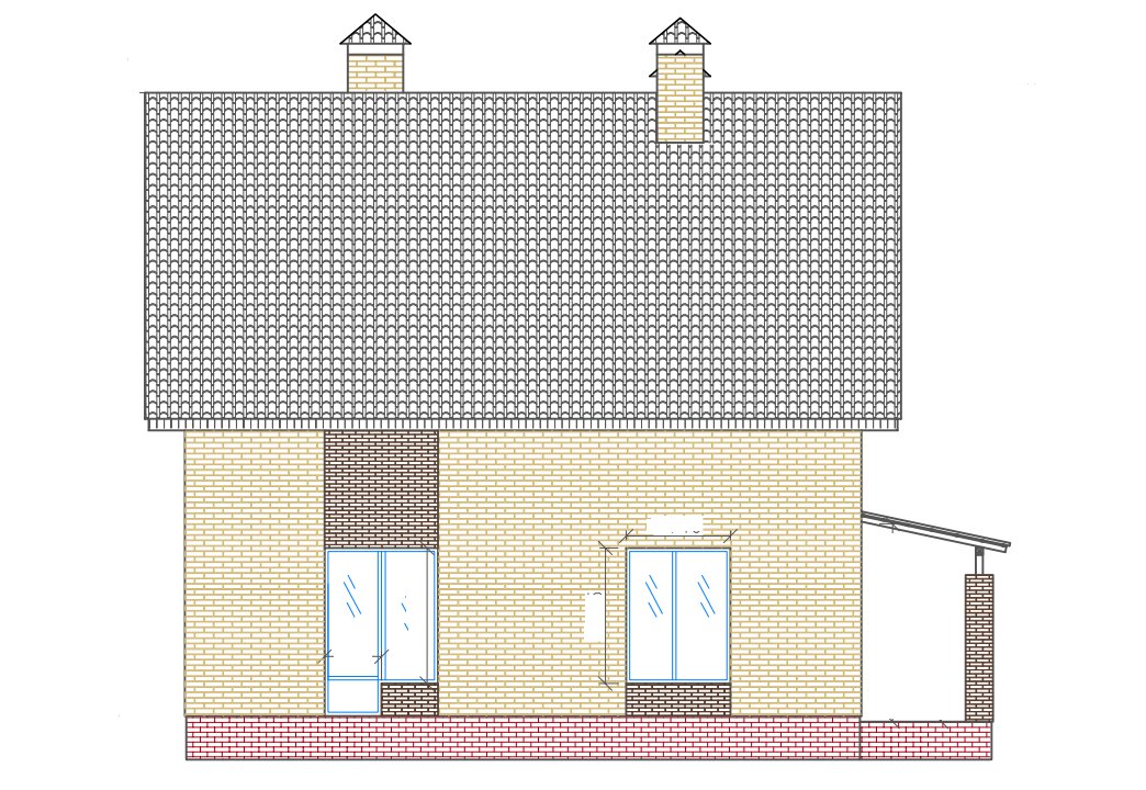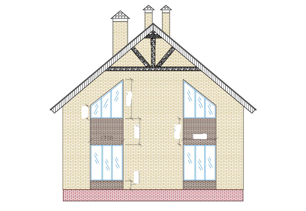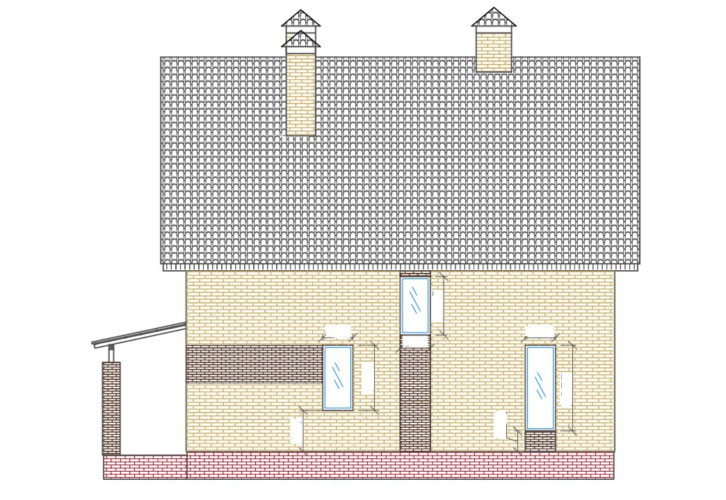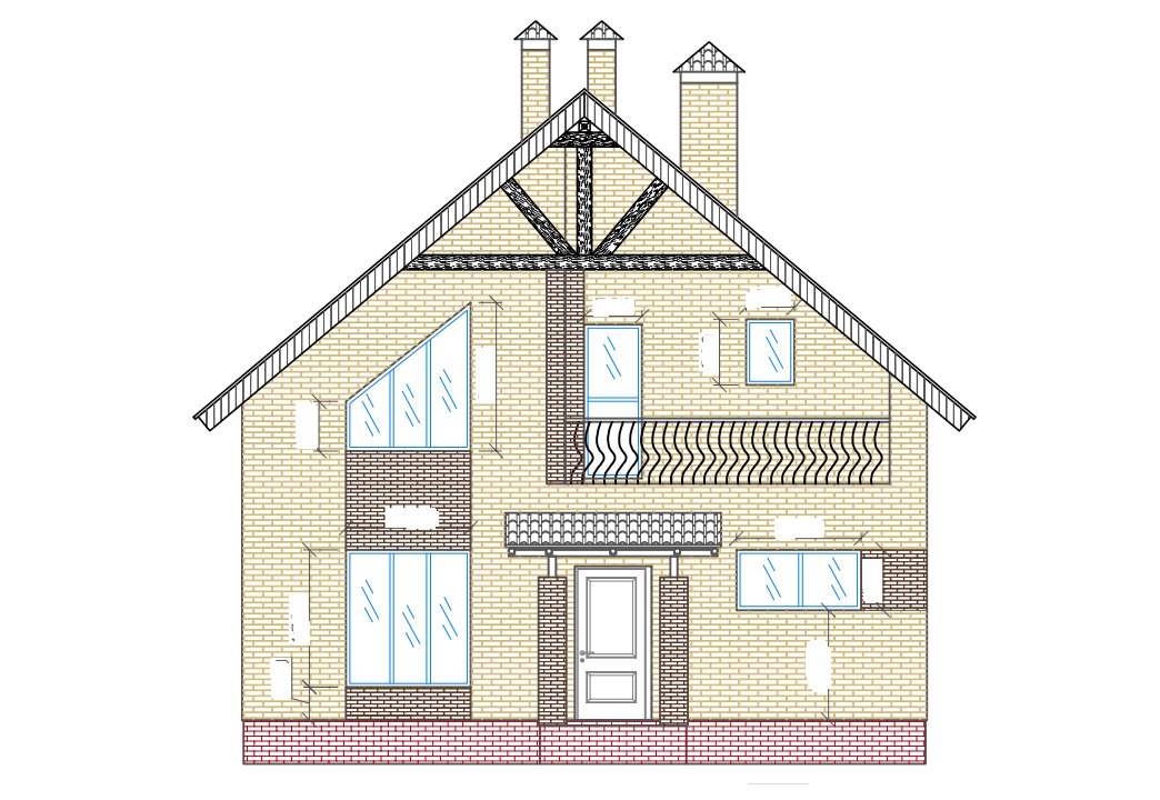 | Фасады | стены дома отделаны керамическим одинарным кирпичом цвета "солома" и "шоколад". Цоколь из красного кирпича рядового под отделку камнем или штукатурку. |