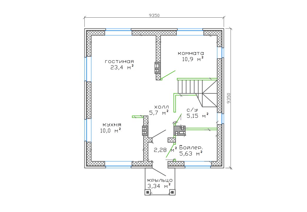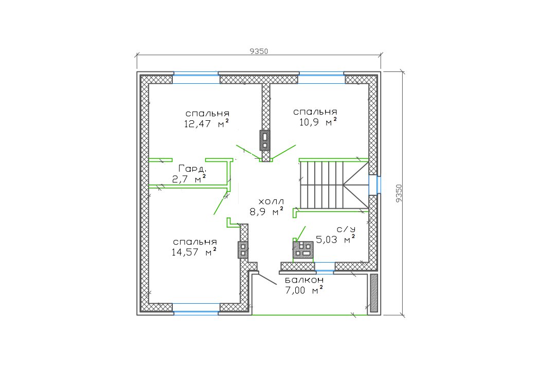 9,35 x 9,35 м