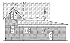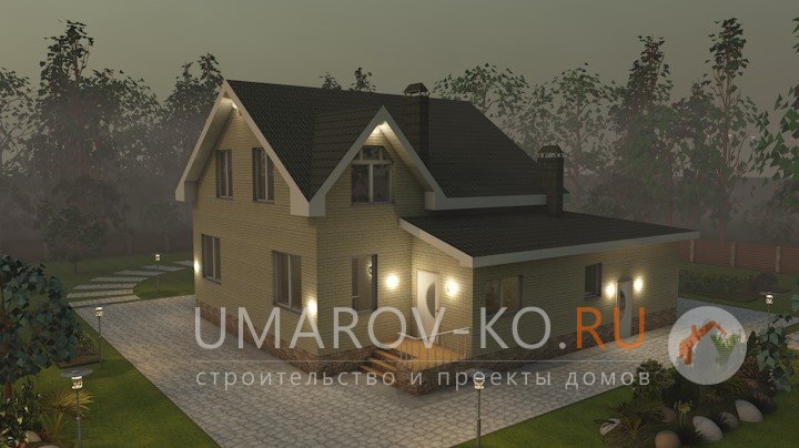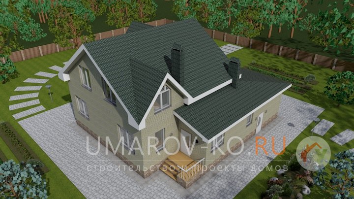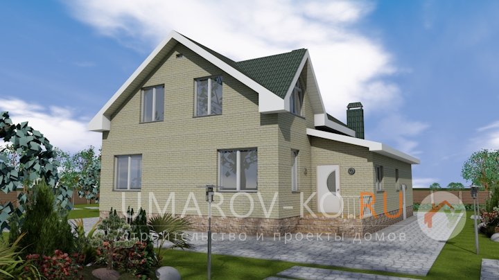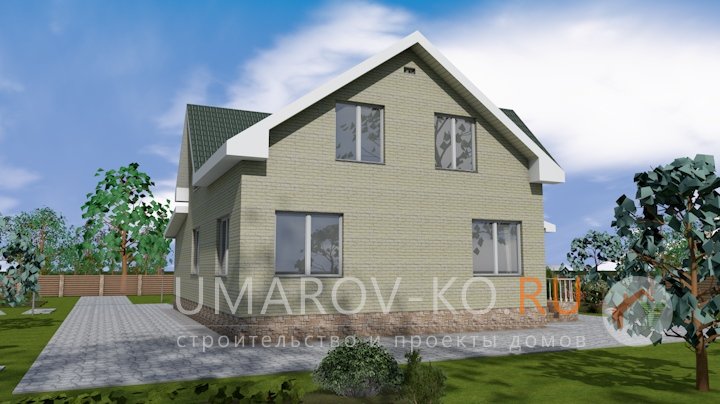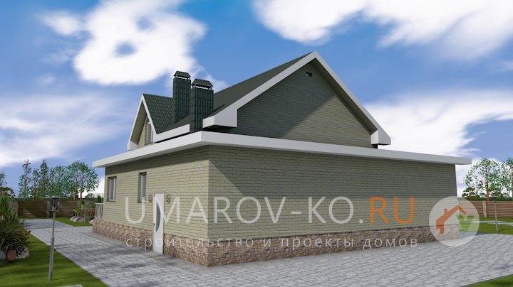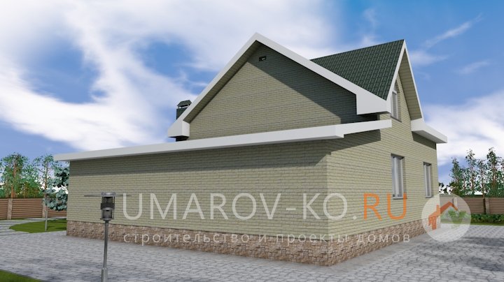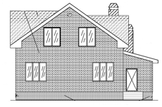 | Фасад | стены дома отделаны облицовочным полуторным керамическим кирпичом желтого цвета. Цоколь выполнен из красного кирпича, рядового. Вентканалы обшиты металлическими листами под цвет кровли | |