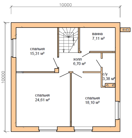 | 2 этаж | холл, ванная, с/у, 3 спальни |