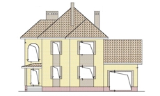| Фасад | стены дома отделаны облицовочным одинарным желтым кирпичом. Обрамления окон и ворот, участки фасада под и над окнами выполнены из облицовочного одинарного коричневого кирпича. Цоколь выполнен из красного кирпича, рядового. Кровля - коричневая металлочерепица |
