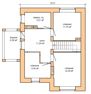 | 2 этаж | холл, балкон, ванная+с/у, 3 спальни |