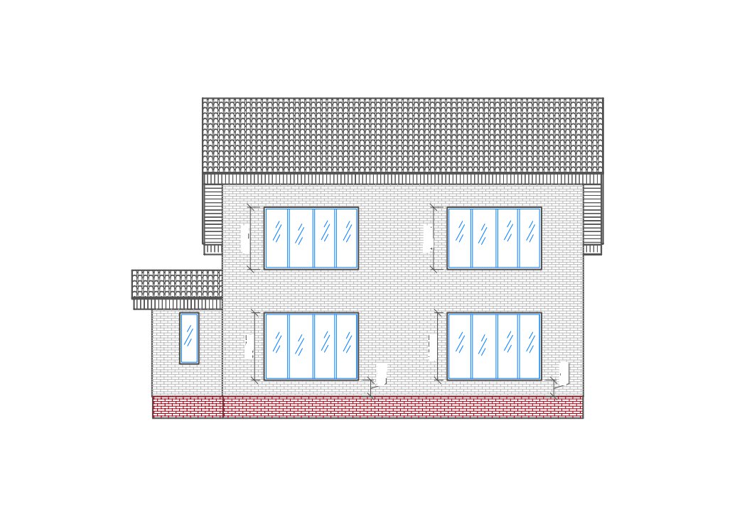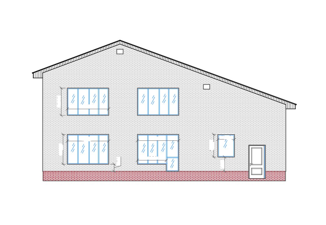| Фасад | cтены дома отделаны облицовочным одинарным керамическим кирпичом цвета "солома" и "шоколад". Цоколь выполнен из рядового красного кирпича под отделку камнем |